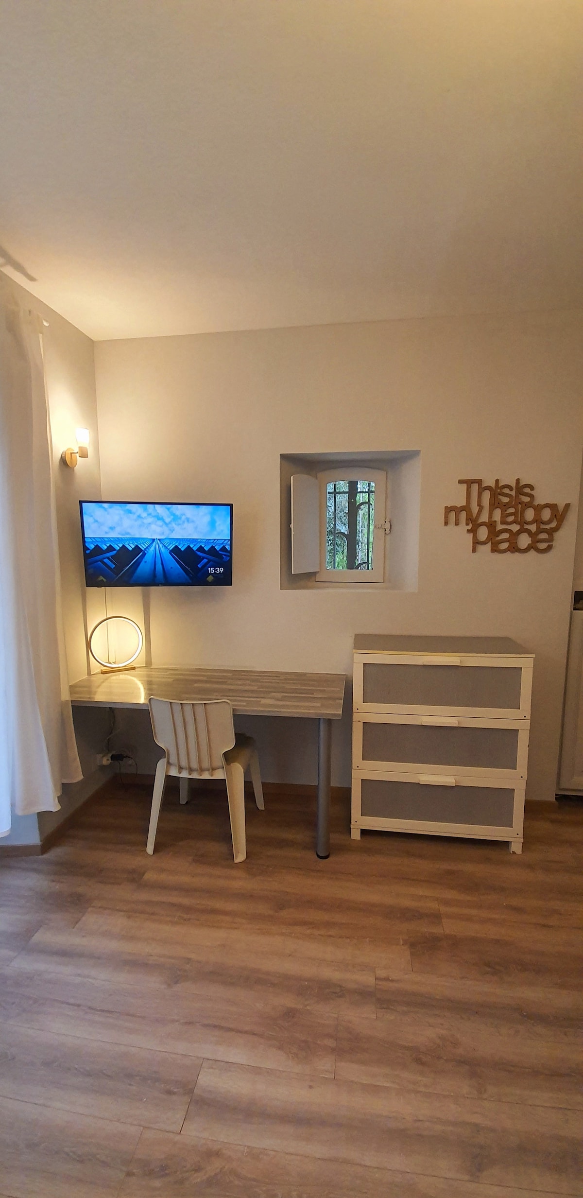 Loue dépendance dans grande maison "Le Mont des Fées". Nous vous accueillons dans un environnent calme et verdoyant tout en restant à proximité du centre ville. Le logement dans un quartier privilégié est composé d'une pièce avec canapé convertible de très bonne qualité, d'une kitchenette avec bouilloire, cafetière Nespresso, micro-onde, plaque induction et frigo, d'une salle d'eau spacieuse, d'un WC séparé et d'un couloir avec placard. Vous aurez accès au parking gratuit et sécurisé.