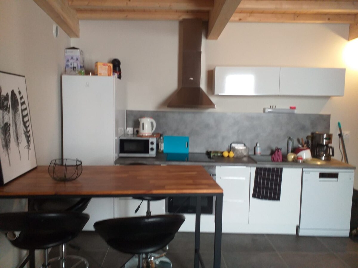 舒適安靜的兩房公寓。設備齊全。距離艾恩平原(Plaine de l'Ain)25分鐘,是BUGEY / PIPA服務提供商、UFPI學員的理想住宿,也是探索布熱(Bugey)及其旅遊景點的理想住宿 - 佩魯格(Pérouges)(20分鐘 - 鳥類公園(Parc des Oiseaux)(25分鐘) - 里昂(Lyon)(火車25分鐘 - 駕車45分鐘)。 提供床單和毛巾。熨斗和熨衣板、吹風機。 室外電源插座,可為電動車充電(標準10A插座)