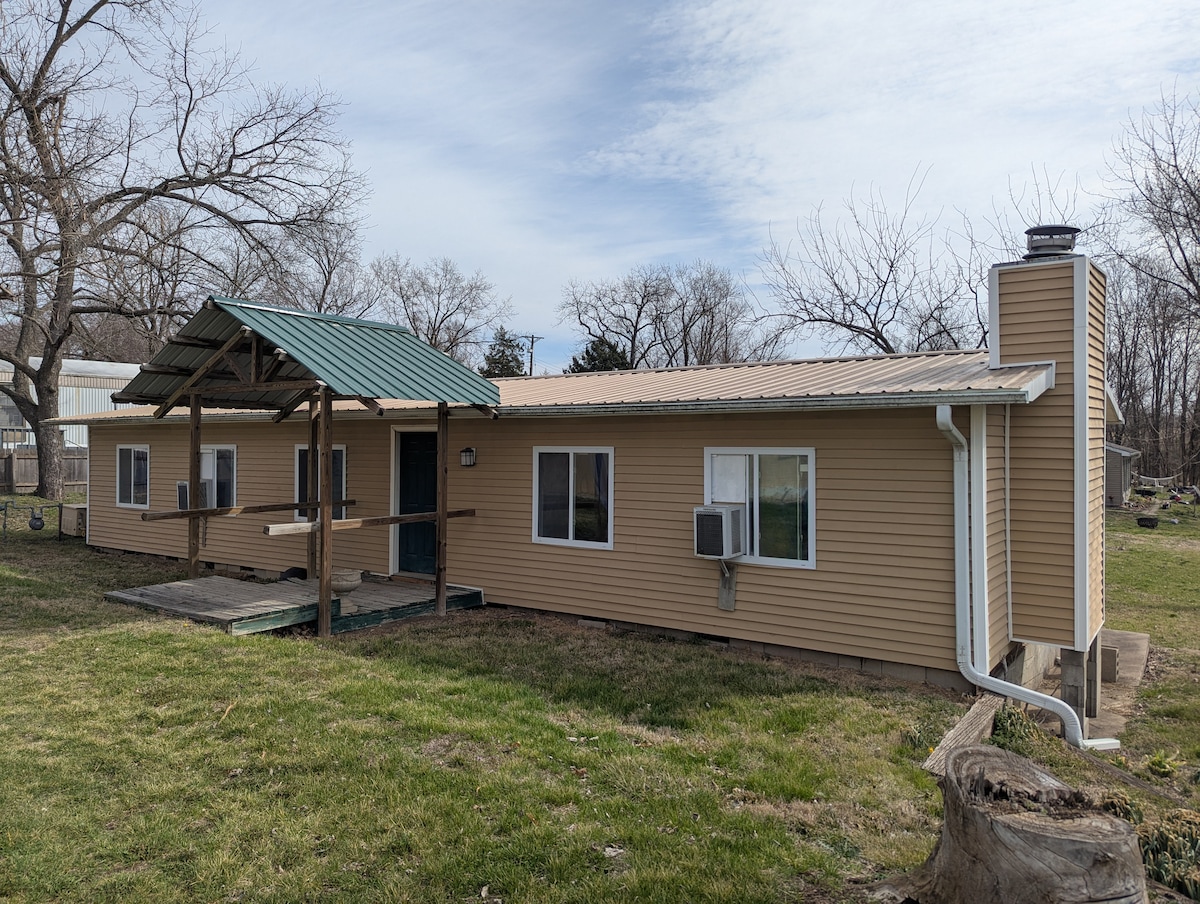 400平方英尺的「迷你屋」,位於私人土地上的樹林邊緣,可欣賞鄰居的景觀。鄉村環境。室外:綠地和樹木!內部:舒適、可愛、現代化和令人愉悅的色彩調色盤。通往露台的人行道旁的車道上有光線充足的寬敞停車位。來這裡度過漫長的週末、婚禮或工作? 太好了!距離Atchison、Weston和K.C.機場25-30分鐘。距離St. Joe、加油站和美食。請繼續閱讀,了解設定和設備與服務的詳情。
