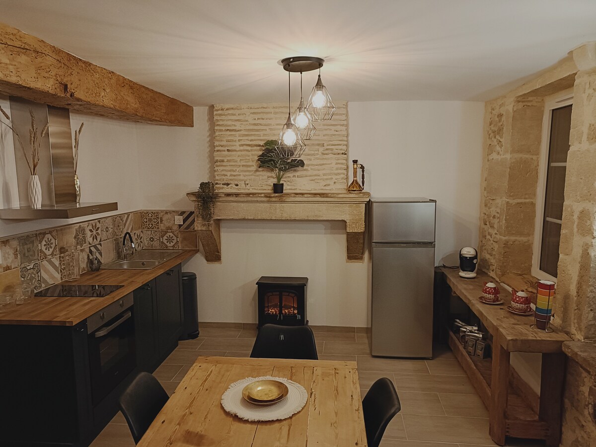 Venez vous ressourcer et vous retrouver seul ou en duo dans ce cocon de 80m2 entièrement rénové, situé au cœur du joli village ancien de Gensac en Gironde, avec une vue imprenable sur la vallée où vous pourrez admirer le soleil couchant. Vous serez conquis par son charme suranné, sa déco atypique et soignée et son confort incomparable. Un petit-déjeuner "à la française" vous est offert pour votre première nuit !
