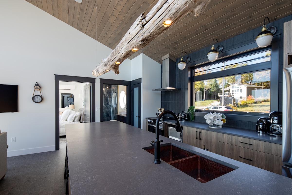 FlowEdge Riverside Getaway是一個神奇的地方,大自然與奢華相遇。FlowEdge坐落在200英畝的土地上,距離機場僅30分鐘路程,距離哈利法克斯僅45分鐘路程。 在舒適的豪華加大雙人床上觀賞星空,在自己的木柴熱水浴缸中放鬆身心,徒步後享受清爽的淋浴,在海灣窗戶旁擁抱時觀看火焰,並在設備齊全的廚房為親人烹飪美味佳餚。這是您一直渴望的度假勝地。