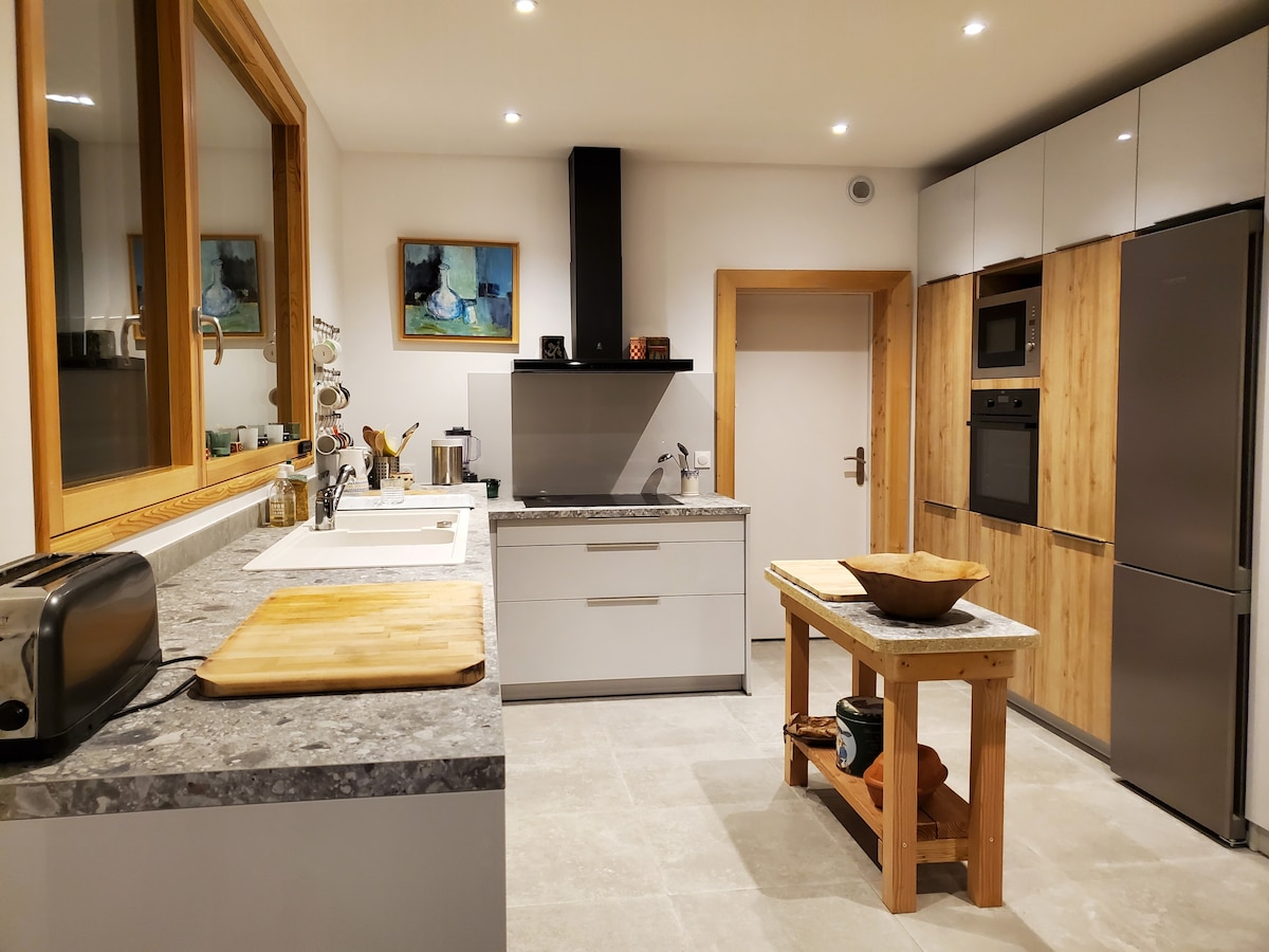 非常靠近並俯瞰Vallouise村,由建築師設計的明亮且非常舒適的Marie度假木屋,周圍環繞著美麗的山間花園,您會很安靜,在室內,因為在外面,您可以欣賞舒緩的山景,展覽將讓您全天享受陽光。 雖然步行5分鐘即可抵達村莊中心及其設施,但這個地方非常安靜。 寬敞的客廳裝飾有爐子,供您在冬天的夜晚使用。