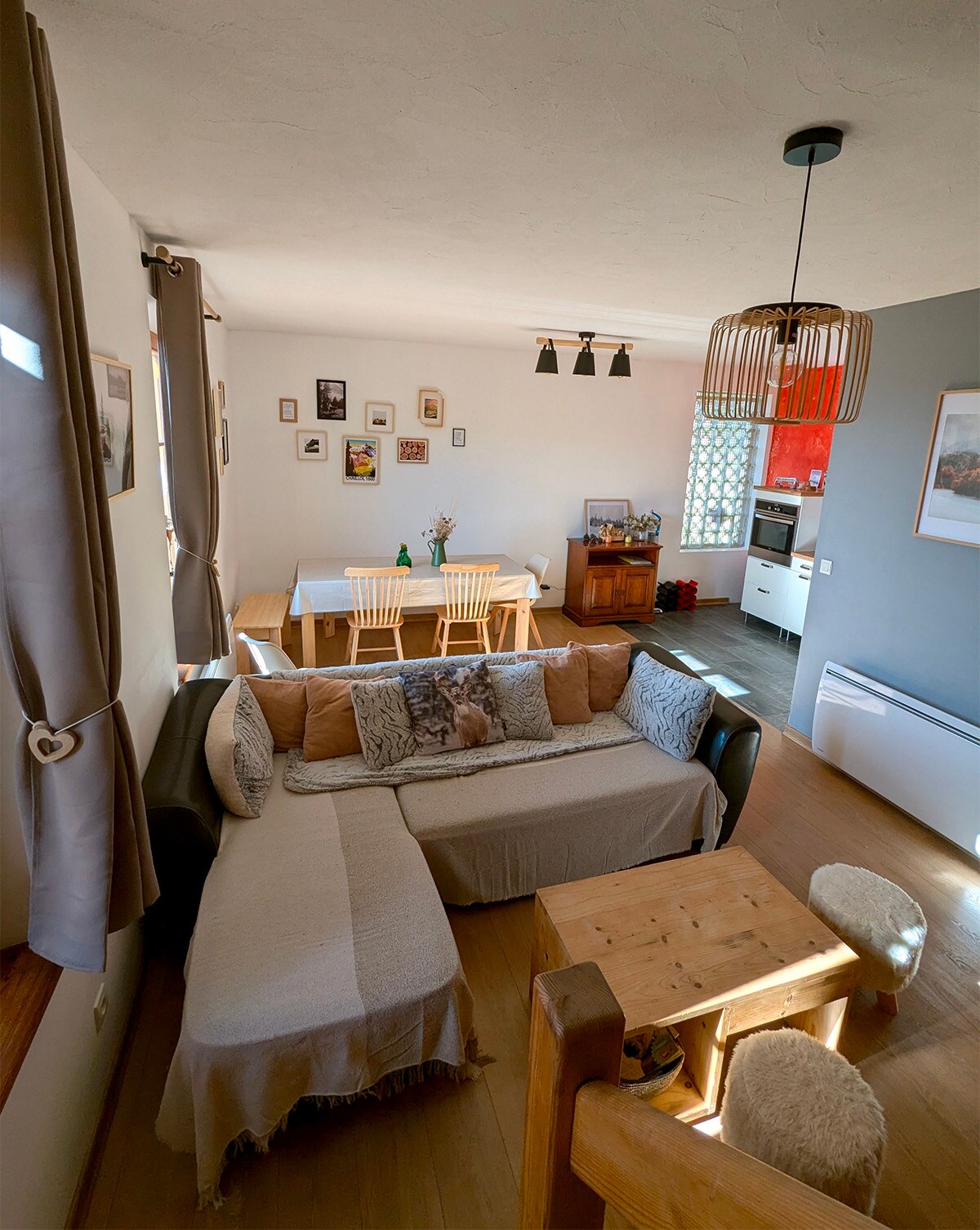 Le Flocon est au centre de la station de Chaillol,au départs de multiples randonnées et des pistes de ski. Situé au premier étage d'une résidence,dans une ambiance chaleureuse et montagne. Sur place vos lits seront faits, le linge de bain et maison sont à disposition. Vous disposez d'un coin nuit avec lits superposés ainsi que d'un canapé-lit de bonne qualité. La pièce à vivre avec coin cuisine est spacieuse et agréable. Salle d'eau avec douche à l'italienne.