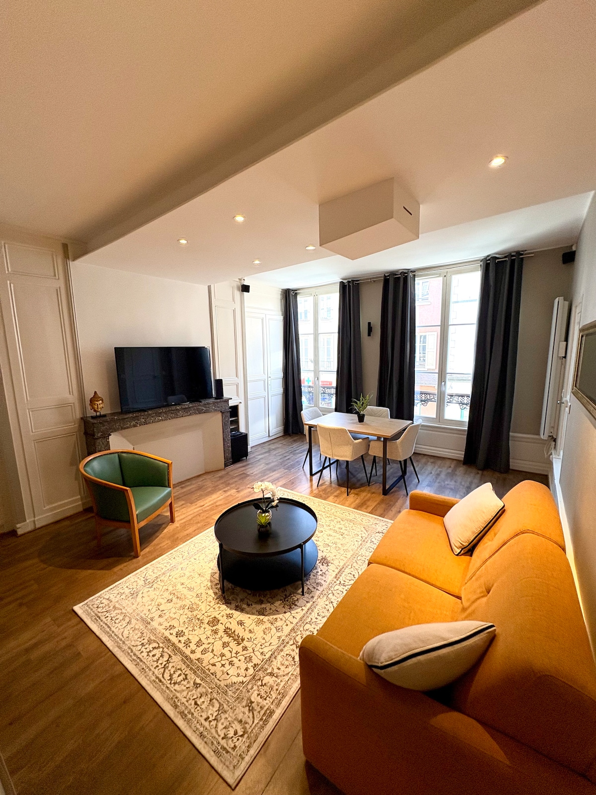 50 平方公尺的高級公寓,光線充足。 無論是白天或晚上,都能欣賞到特魯瓦舊城區的絕佳景致。 您可以在豪華的按摩浴缸中放鬆身心。 您將在一間配有大型飯店級床鋪和超大電視的房間過夜。 您可以在長陽台上欣賞戶外景色。 您的車輛將停放在大樓地下室的安全車庫中。