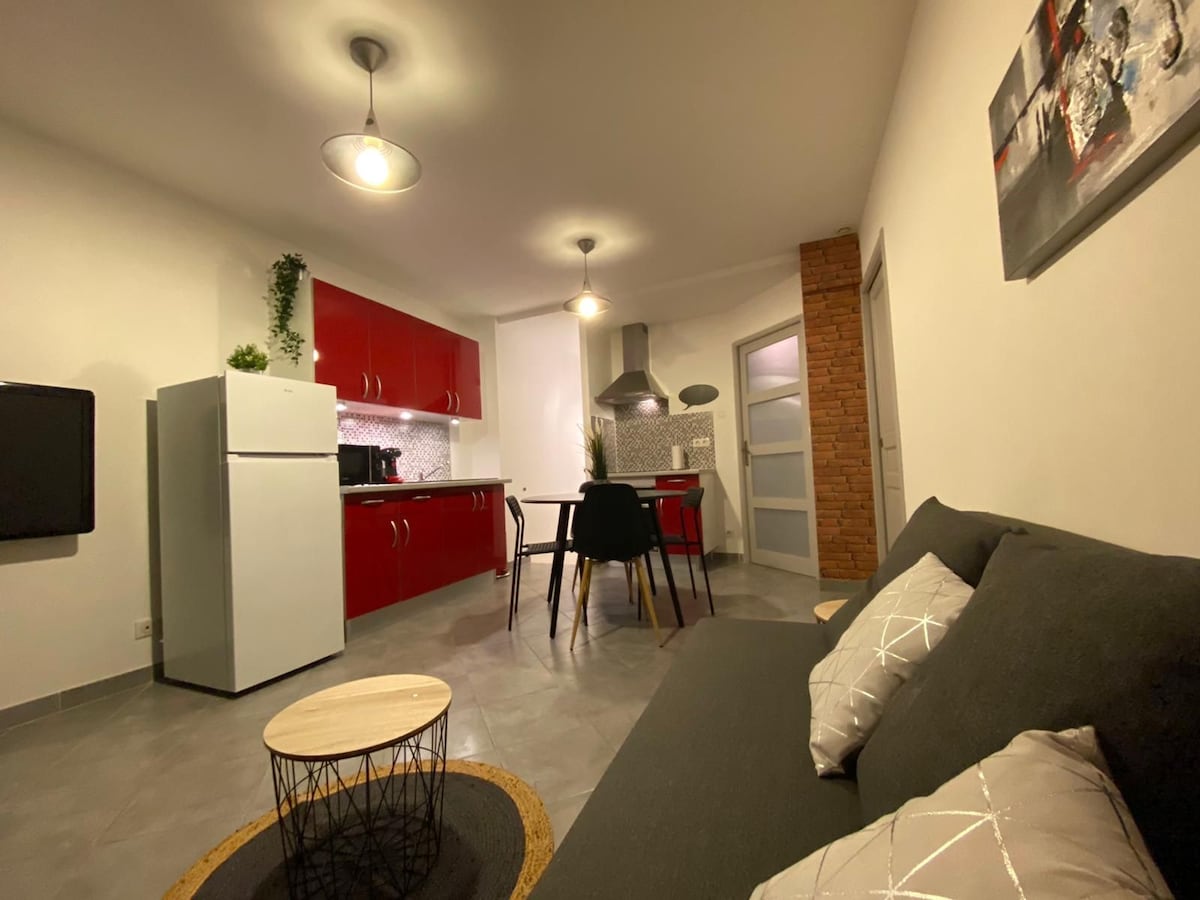 ✨ Night Cocoon –舒適的單間公寓,綠色露台🌿全新、獨立和一層。 🛋️客廳配有小廚房和沙發床、🌞明亮的臥室、🚿現代化的浴室。 🌿私人露台。🍿 Wi-Fi、空調、Netflix智能電視+ 50個頻道(⚠️無TF1和M6 )。 🛏️床單、毛巾、香梘、洗髮水、吹風機。 🍴廚房:冰箱、微波爐、迷你烤箱、洗衣機、咖啡機、碗碟。 🥐提供咖啡、茶、飲料和馬德蓮。🚶♂️步行10分鐘即可抵達市中心和聖胡斯特教堂。