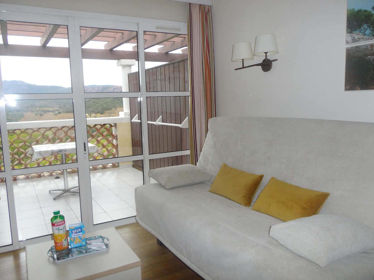 想在聖拉斐爾高地的陽光下度假,我們提供這間美麗安靜的公寓,在Cap Esterel的中心地帶,可欣賞海景和高爾夫球場景觀。 最多可容納4位旅人,位於完全步行和安全的度假村。 從ST RAPHAEL站乘坐21路巴士即可直接到達。 我們以簡單、舒適和分享的方式歡迎您。 立即預訂您的迷人假期,享受海洋和陽光。
