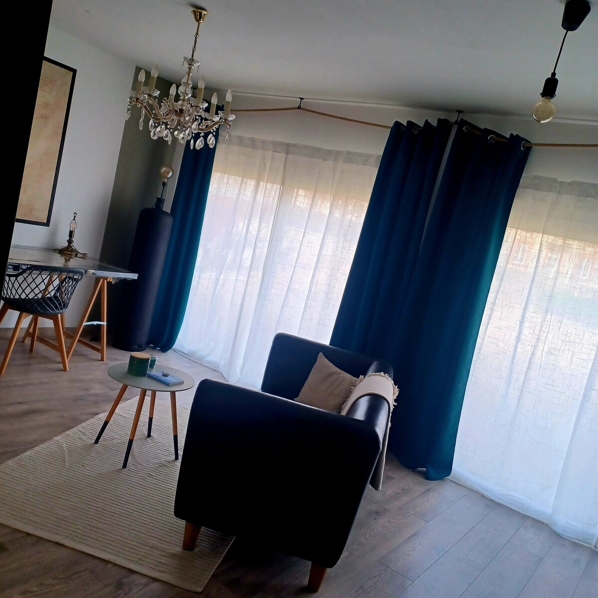 獨立且優雅的 48 平方公尺單房公寓,位於獨棟房屋內可容納 2 人。 配備小廚房、臥室、辦公區、帶電視的休息區以及獨立的浴室和廁所(可應要求提供嬰兒床和暖氣)。 一個值得探索的休閒空間 ;) 價格包含毛巾和床單。 住宿還有一個庭院可供停車和一個私人花園(花園桌、乒乓球桌)。