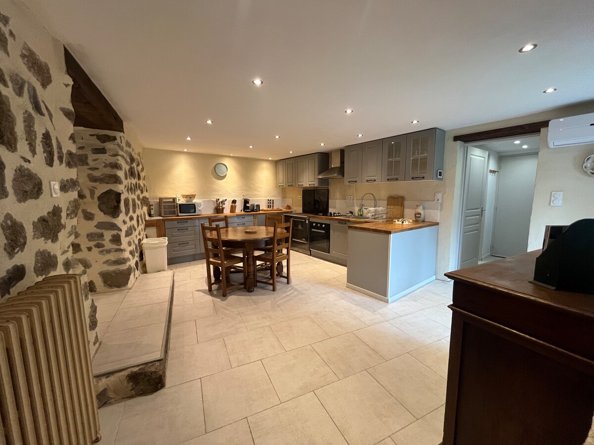 Ideal for relaxing, hiking and biking, cross-country skiing on the Aubrac plateau, you will enjoy the house for the large wooden terrace, the view of the village, south face. You'll love the warm athmospher of the large living room, the big cozy bed and the tranquility. For winter, the house is insulated and heated. Private car charging outlet & remote work space, wifi. Supermarket, bread depot, pharmacy, doctor and nurses in the village about 1 km away.