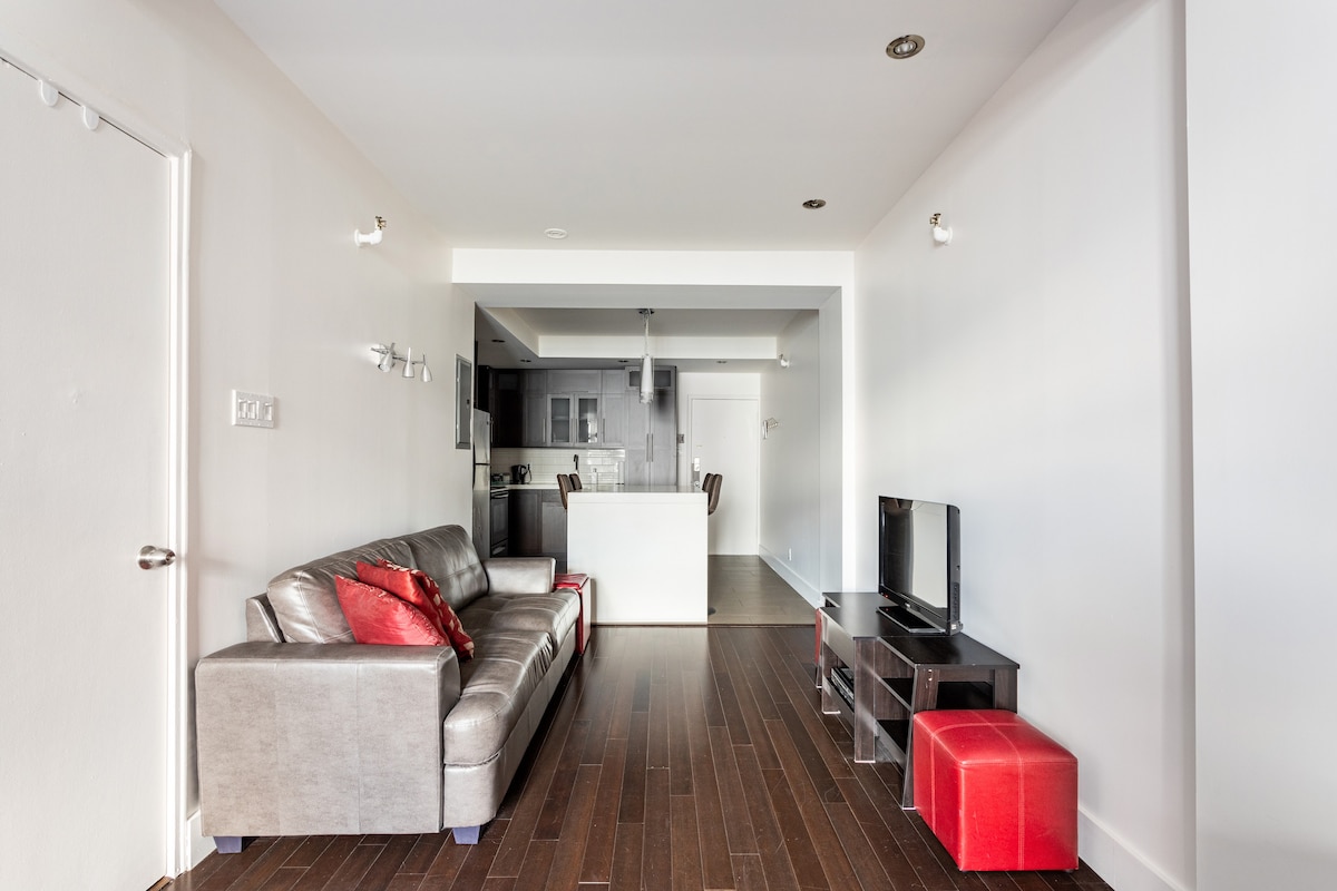 安靜時尚的Loft空間 安全街區 免費停車位 獨立區域 設備齊全的廚房 小品質的寶石正在尋找兩位優秀的旅客,享受難忘的體驗。 靠近莫莫倫西瀑布( Momorency Falls )、奧爾良島( Île d 'Orléans )和舊魁北克省( Old QC )。 靠近城鎮和景點的完美選擇。 安靜、隔音、舒適的地方,有家的感覺,和飯店一樣舒適。 健身房 更衣櫃 WiFi 攜帶式空調 高級智慧電視 按摩療法 * Taxes inc