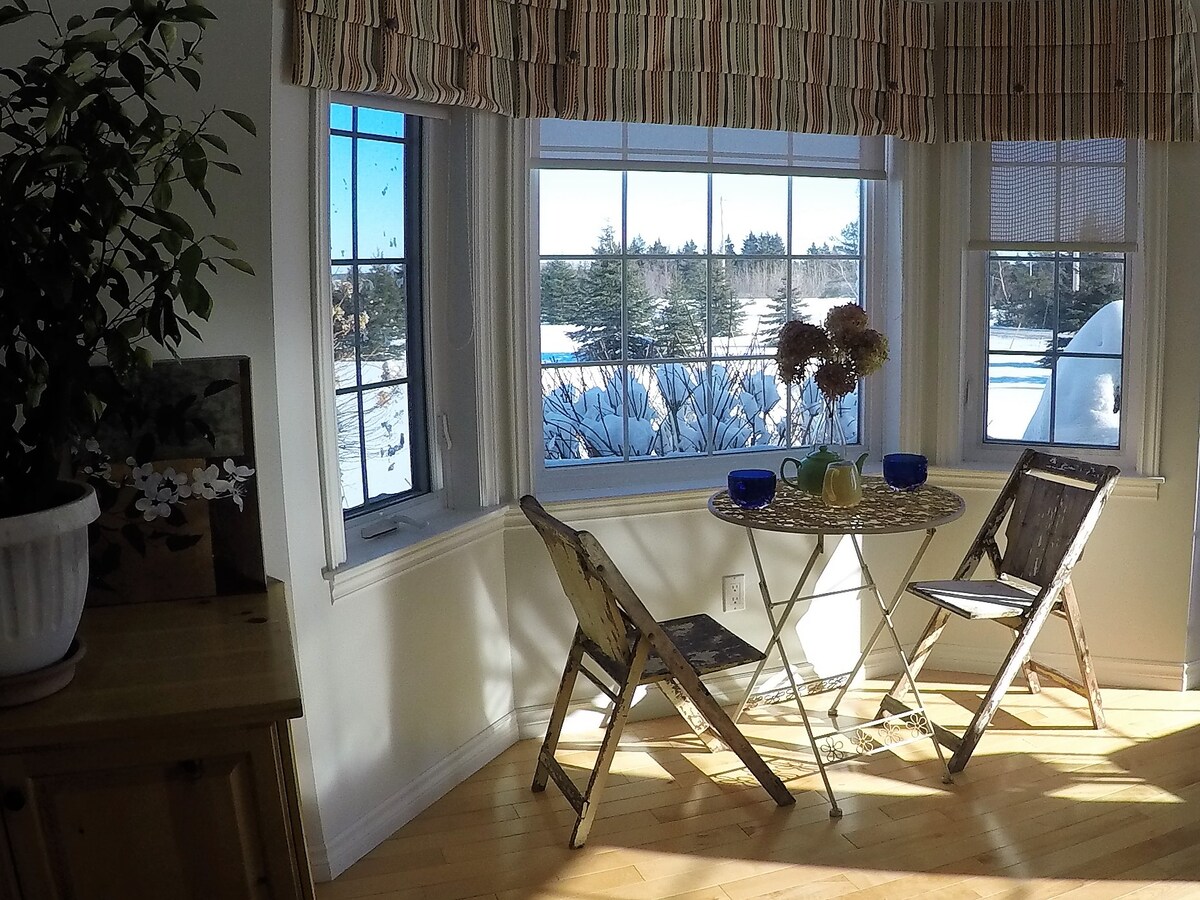 Situated on NB's east coast, renowned for it's warm sandy beaches, this exquisite home with all the comforts, has views of the ocean & lavender fields. Set on 100 acres & only 2 min drive to beach, there's lots of walking, biking & snowshoeing trails all connecting to groomed snowmobile trails. Perfect for summer vacations, weekend getaways, special occasions, snowmobiling or cycling excursions. Experience privacy & tranquility while still enjoying comfort & being close to many destinations.