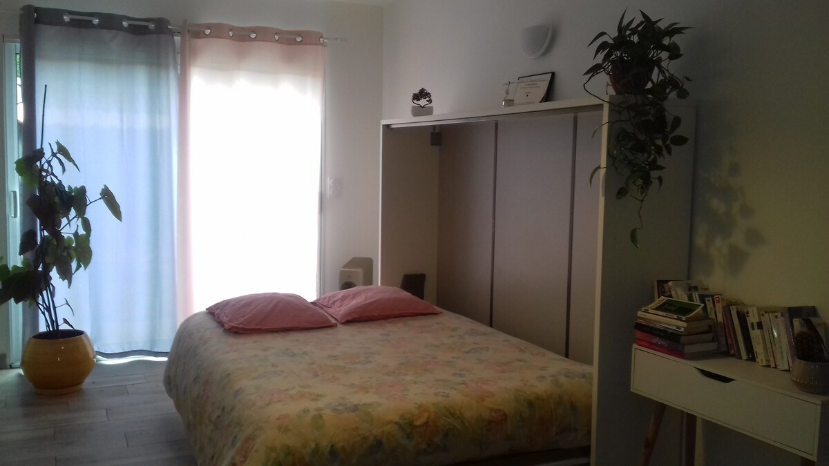 明亮的單間公寓,朝南。獨立入口,停車位,位於安靜的街區,附近有各式設施: 麵包店、報攤、大型超市、藥局等 餐廳、培訓中心(AFPA、CCI、CEFRAS、ESFORA、CFA、Rosa Park等)、Basic-Fit 健身房等 距離巴士站 50 公尺 市中心 10 分鐘 旺代海岸 25 分鐘 時間表(彈性): - 入住:下午 5 點起 - 退房:上午 7 點起 其他: - 第二人:20 歐元/晚 請愛護這個地方。