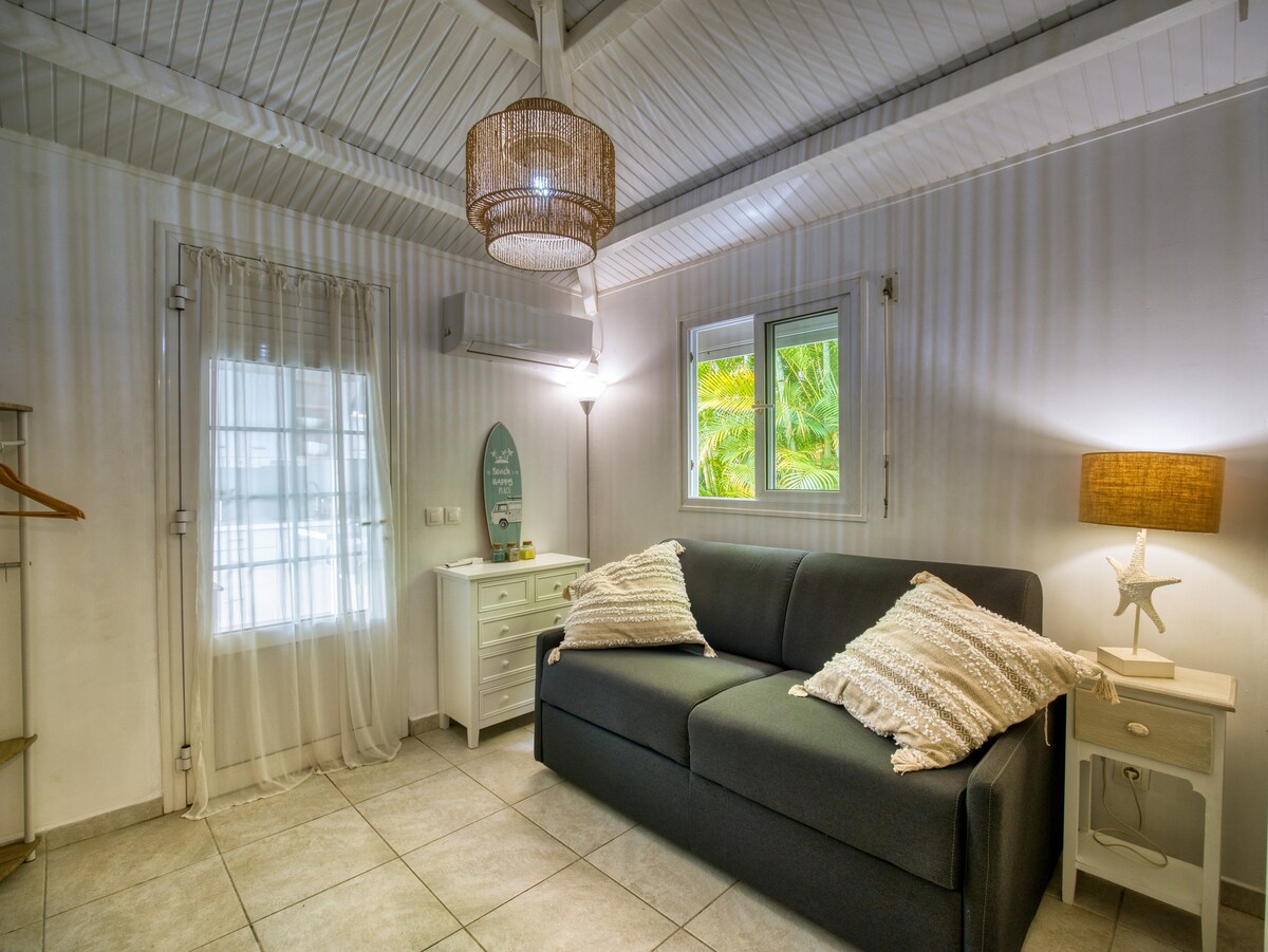 Située à Lamentin commune connue pour sa station thermale «Ravine Chaude», l'appartement Domi des Caraïbes vous accueille pour des séjours idylliques et dépaysant en Guadeloupe. Idéalement située au cœur de l’île, vous bénéficiez de toutes les commodités et pouvez profiter de nombreuses activités culturelles, aquatiques et en pleine nature. D'une superficie de 36m² avec terrasse et piscine sécurisée, l'appartement propose 2 chambres 1 lit double et 1 canapé-lit dans le salon, soit 4 couchages.