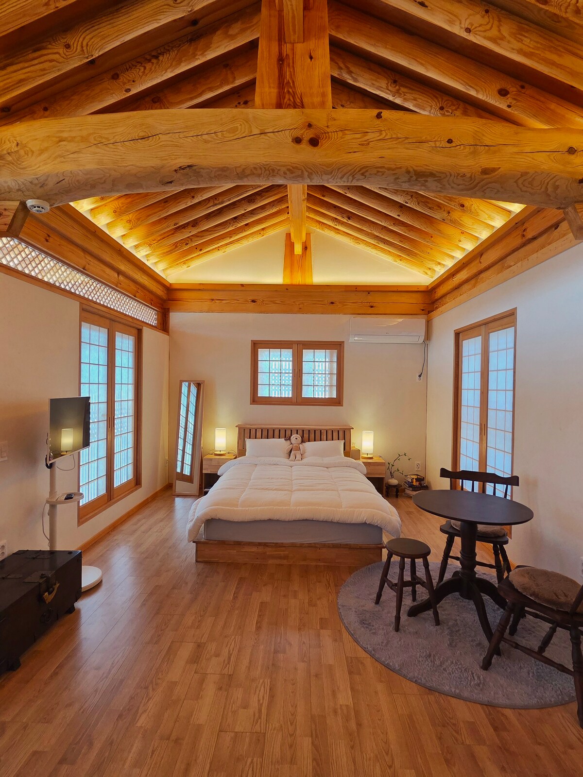在這裡享受韓屋的魅力和現代化的便利,享受一段特別的旅程。位於餐廳、便利商店和觀光景點的中心,非常方便 [使用] -標準人數4人,建議最多6人,最多可入住8人 -每人額外收費30,000韓元(36個月以上) - 每人 1 張被子、墊子,每人加 2 萬韓元,最多 2 張(建議 7 人以上使用) (如果每張床睡2人,最多可容納6人) [設備與服務] -洛克希丹(L'Occitane)(洗髮精、護髮素、沐浴露、洗手液) -淋浴毛巾、小毛巾、手巾 - 急救箱 [空間構成] -透過客廳窗戶可欣賞韓屋景觀、瓦景觀 -拍照點、四季皆可使用的室內按摩浴缸 - 3 間臥室(3 張雙人床) [服務] - 房源前設有停車設施(可停 1 輛車) -提供 Nespresso 咖啡 -茶具 -提供早餐(麵包、優酪乳、時令水果、拉麵) [設備] - LG 電視(2 台智慧電視) -戴森空氣機(長筒) -冰箱 - De'Longhi 電熱水壺、烤麵包機 -微波爐 -葡萄酒杯、開瓶器、餐具