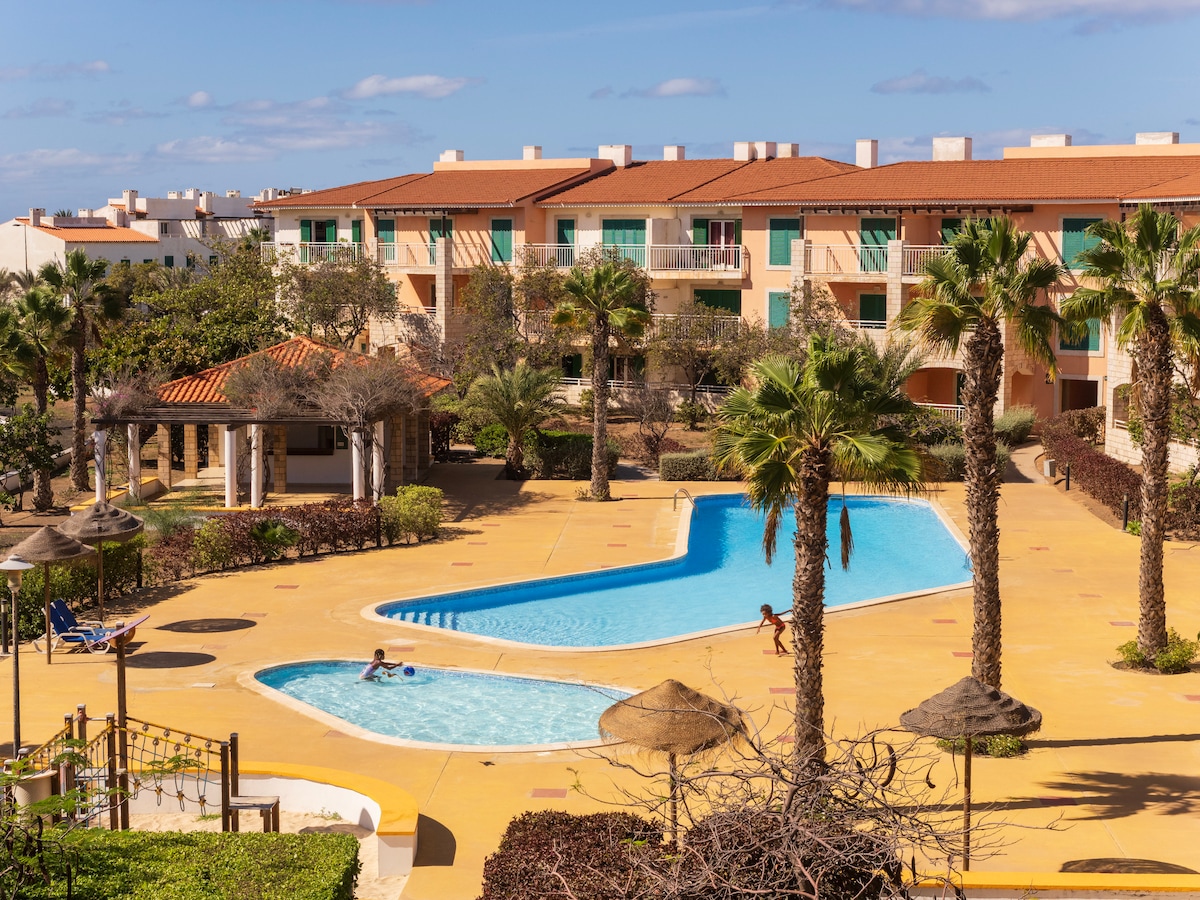 在薩爾安靜的Villa Verde Resort的這間現代化2臥室(每間臥室有2張單人床)2浴室公寓中放鬆身心。 每間房間均設有冷氣、智能電視、全功能廚房、洗衣機和兩個私人陽台。 步行即可抵達餐廳、市場和聖瑪麗亞海灘。 非常適合情侶、家庭或冒險家。 舒適、便利和島嶼魅力!