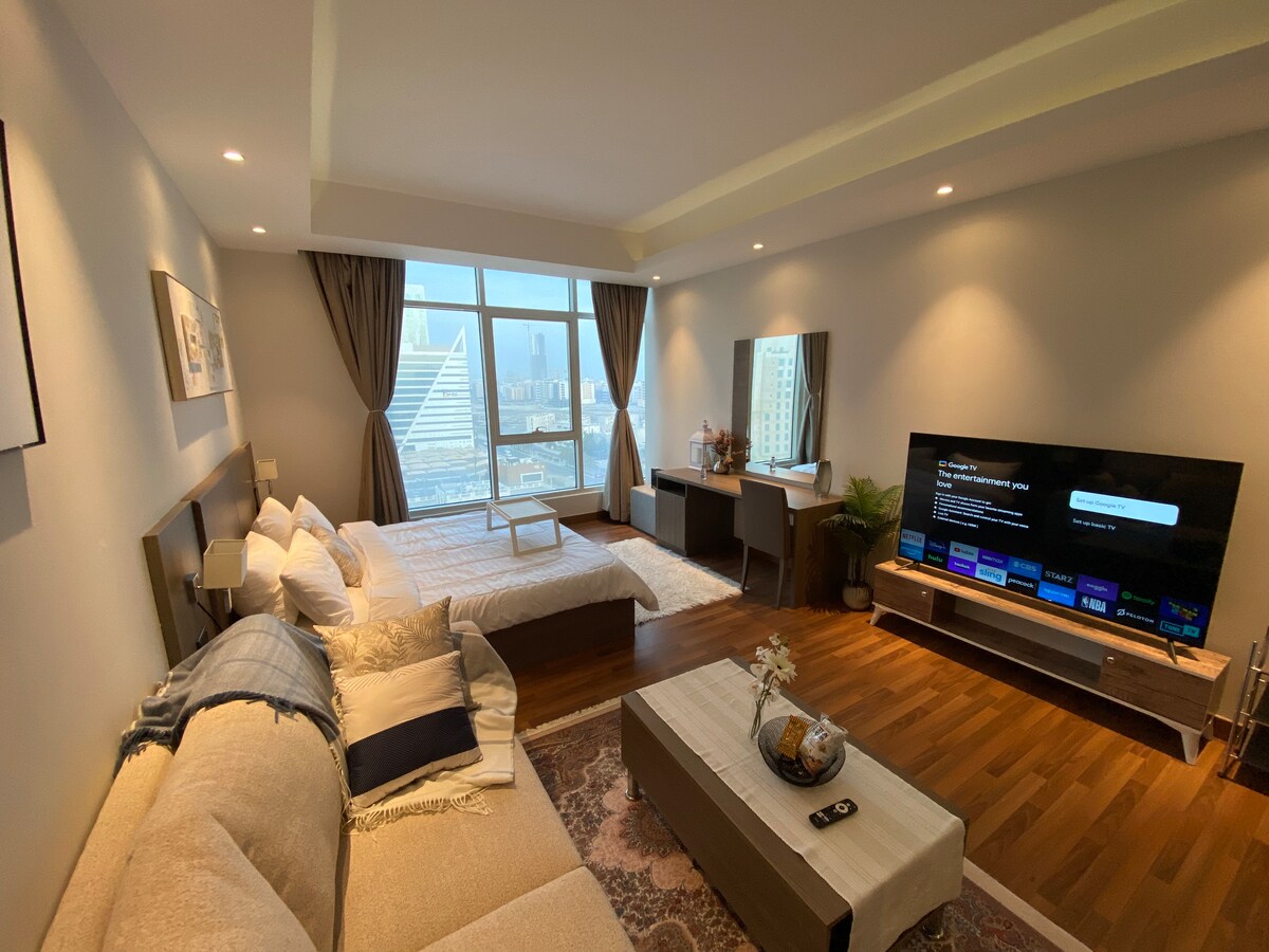 歡迎入住! 我們獨特的公寓位於市中心,是探索當地景點和體驗美食的完美基地。 特色: - 2間臥室 -全套廚房 -可欣賞城市景觀的起居區 -衛浴3 -光纖網路 -免費停車位 公寓距離Dana Mall僅幾步之遙,靠近市中心、Seef Mall、Al-Aali Mall、Bahrain Mall、Dana Mall、Reef Island和Moda Mall。 我們期待你的光臨,讓你的住宿成為難忘的體驗! 登入時,我們可能會要求你提供身份證明文件。
