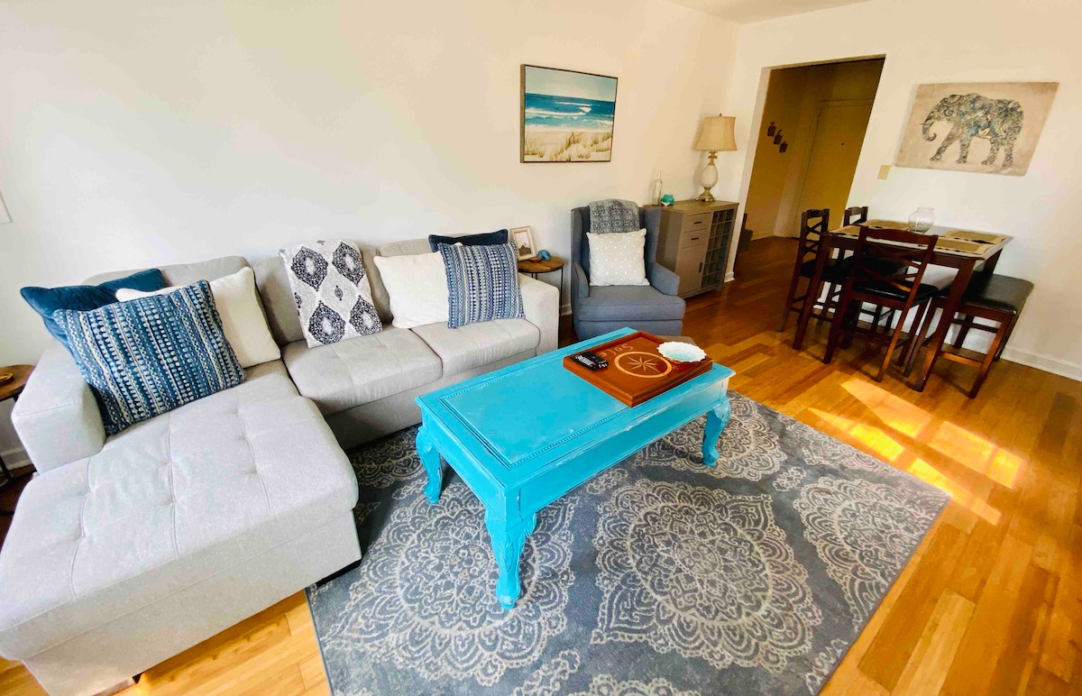 Downtown Blue BoHo w/ outdoor spaces, grill & FP