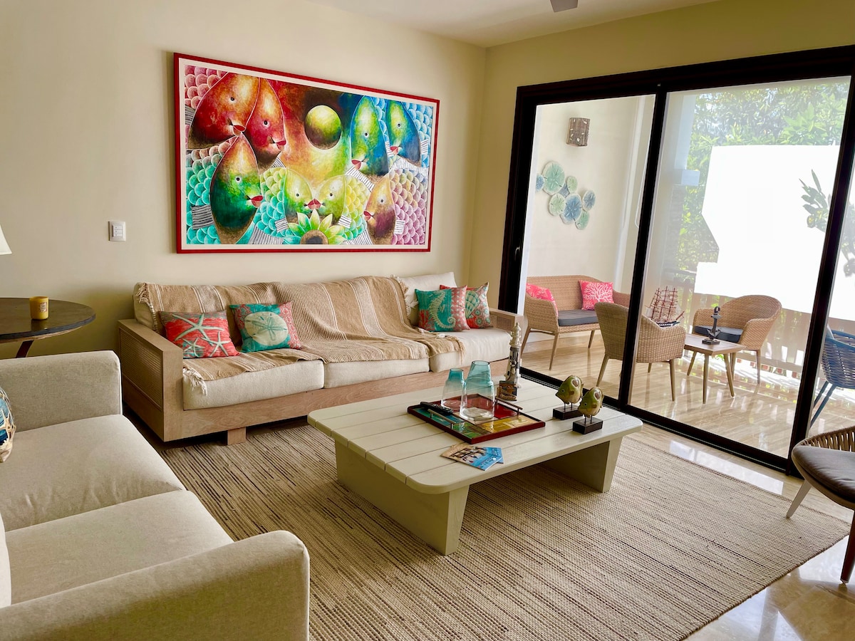 從陽臺上欣賞令人驚嘆的海景和度假村景觀! 這間美麗的公寓配備了 2 台 60 吋智慧電視、WiFi、3 台 Alexa 裝置,以及智慧鎖,讓您住得舒適。這間公寓是薩馬納灣哈仙達酒店 (Hotel Hacienda Samana Bay) 的一部分,您可以使用酒店的泳池、酒吧和餐廳!開車 5 分鐘即可抵達卡亞科亞海灘 (Playa Cayacoa),這間公寓是夢想成真的地方!