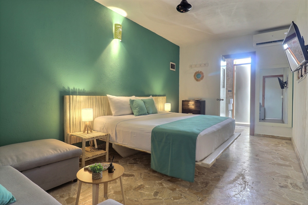 Apartamento tropical con 1 habitaciones en el centro de Las Terrenas. Cocina equipada, baño privado, aire acondicionado, TV y WiFi Starlink ultra rápido, ideal para nómadas digitales. Espacio amplio, cómodo y luminoso. A menos de 10 minutos de la playa y cerca de restaurantes, bares y supermercados. Disfruta del rooftop con bar abierto de 17:00 a medianoche en ambiente chill. Perfecto para parejas, amigos o estancias largas.