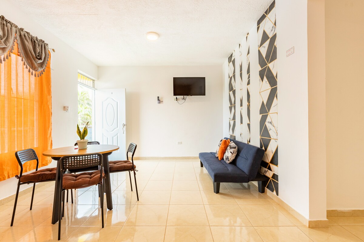 位於Samaná的鬧時尚公寓 在這間位於薩馬納的這間單臥室公寓度過難忘的假期。 在冷氣中放鬆身心,欣賞海灣和山脈的全景。 距離薩馬納碼頭( Samana Pier )僅5分鐘路程。 這是休息和探索這個美麗小鎮所提供的一切的完美好去處。 包括: - 1間臥室 - 1間浴室 - 1張雙人牀 - 1張雙人牀 -空調 -熱水 -配備IPTV的電視 -高速WiFi