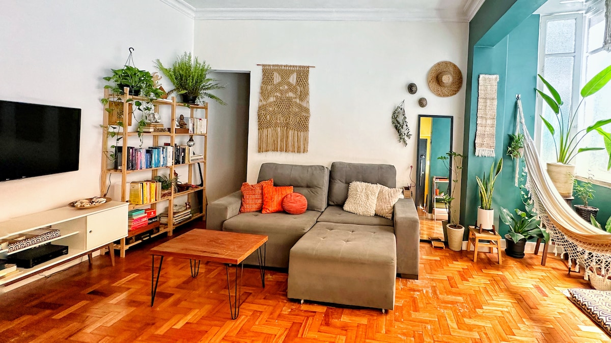 這個獨特的地方有自己的風格,剛剛翻新,可欣賞基督救世主雕像的美景,質樸簡單,同時又舒適。 舒適的露台,配有日式浴缸、燒烤區和美食區。 配有按摩浴缸的寬敞主套房 廚房與客廳相連,寬敞舒適。 位於科帕卡巴納 (Copacabana) 的中心,靠近地鐵站、商店、超市,距離海灘僅一個街區。