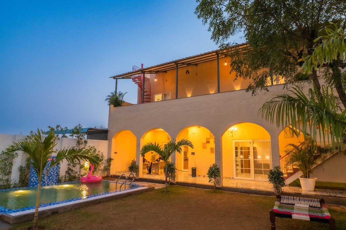 歡迎來到SkyStone別墅–您的私人3BHK室內泳池度假屋! 走進專為放鬆和慶祝而設計的奢華度假勝地。 無論您是計劃與親朋好友一起度假, SkyStone Villa都能為您提供舒適、風格和難忘體驗的完美融合,位於Ajmer Road的齋浦爾市中心 享受配備投影機的私人室內泳池,享受舒適的電影之夜、開放式空調涼亭,以及寬敞的臥室,讓您安心入住。