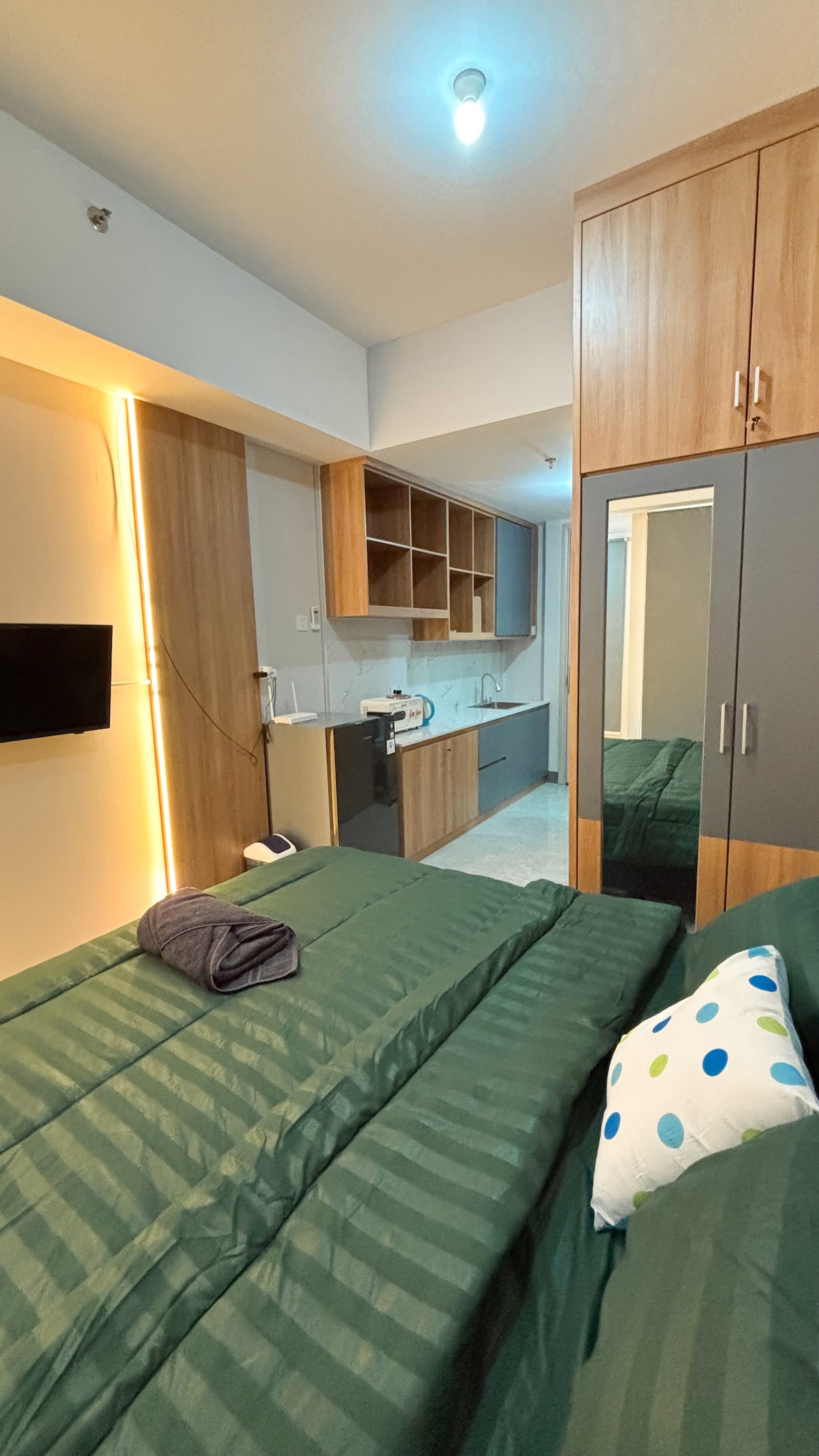 歡迎來到DLL Home ver 0.2:) 我們的公寓位於最新的貝拉塔( Bella Tower ) Pakuwon City Mall上方。 它位於東蘇拉巴亞( East Surabaya )的高級寧靜位置,必不可少:購物中心、學校、教堂、咖啡廳、餐廳、電影院和其他商店。 特色: 雙人牀,可供2人入住 房間景觀:泳池 55英寸智慧電視 【網路】WIFI 熱水器 迷你廚房 冰箱 咖啡、茶和零食 餐具 礦泉水 乾淨的毛巾、洗頭水、沐浴乳 ·熨鬥 吹風機