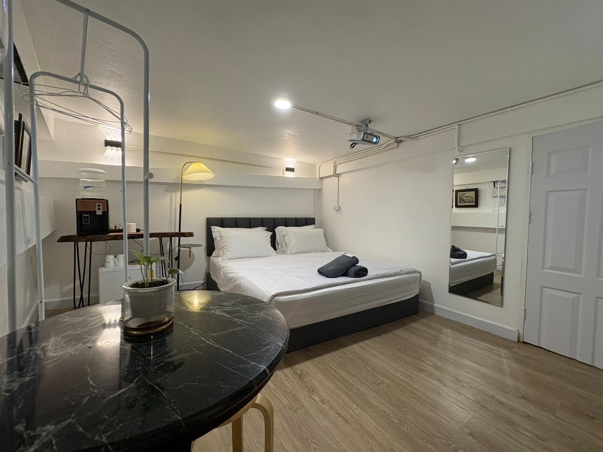 曼谷市中心最佳放鬆之地 客房服務(週一至週五)(已包括) --抱歉,價格不容議-- 700平方米的整套復古房屋,帶花園|歡迎來到我們曼谷的「隱藏寶石」。 這個獨特的房源位於沙吞( Sathon )市中心非常安靜的小巷。 大樓周圍有一個大型叢林般的花園,提供清新涼爽的空氣。 充足的光線充足,房間寬敞,讓這棟房子充滿自由創意。 2樓,2個睡眠區域+屋頂露台