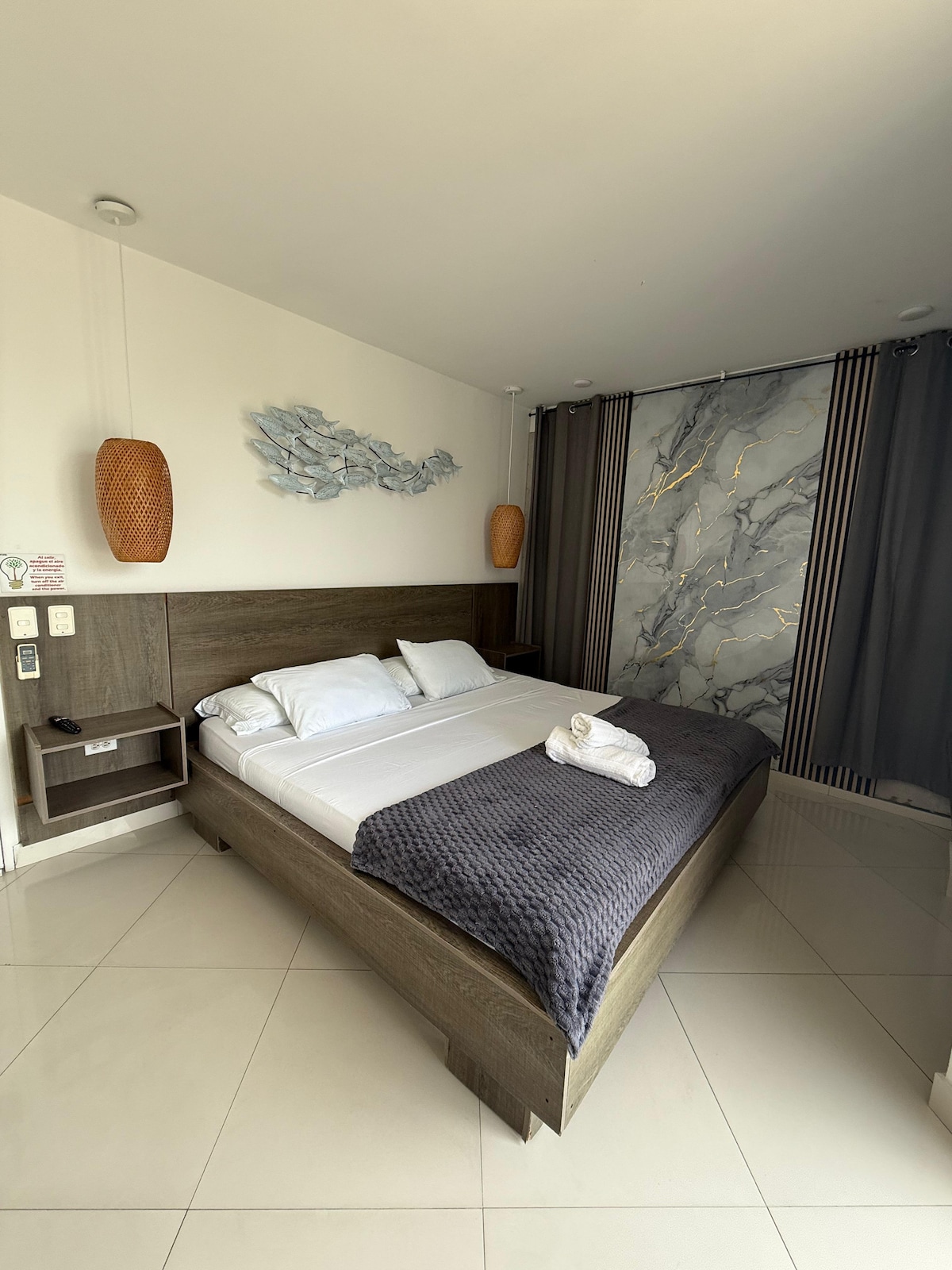 Descubre la tranquilidad del Caribe en Mykonos Beach Sai, un alojamiento diseñado para quienes buscan descanso, comodidad y cercanía al mar en uno de los destinos más hermosos de Colombia. Ubicado a pocos minutos del aeropuerto y a pasos de la playa, nuestro espacio combina un estilo moderno con esencia isleña, creando el ambiente perfecto para desconectarte y disfrutar del paraíso.