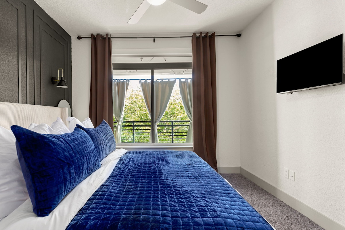 🌟 現代西式風格:時尚、以德州為主題的裝飾,配以高挑天花板 🛏️舒適住宿:特大床、沙發床、全套廚房和單位內洗衣房 📺 保持連線:YouTube TV 和 300 Mbps 光纖 WiFi 🌴 熱門設施:泳池、健身室、休息室、洗衣機/乾衣機 設🚗 有有門禁的車位 🐾 適合寵物入住 🚙地點:步行即可到達河畔步道,7分鐘即可到達珍珠 150➜ 美元寵物費 - 請在預訂時告知你會帶狗入住。 很抱歉,我們不允許貓入住。