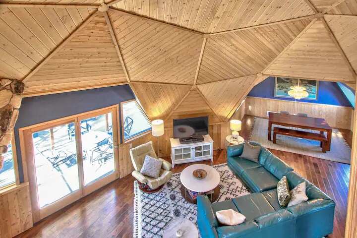 這個獨一無二的圓頂屋是你下次家庭探險的完美小木屋! 步行即可抵達雪頂滑雪度假村,全年都可以享受大熊湖的最佳景色。 每間客房均為家庭設計,為成人和兒童配備了各種臥室選擇。 您一定會愛上這個房源的獨特圓頂形狀,我們相信您會在未來幾年成為您的首選度假屋! 執照號碼:VRR-2025-0992