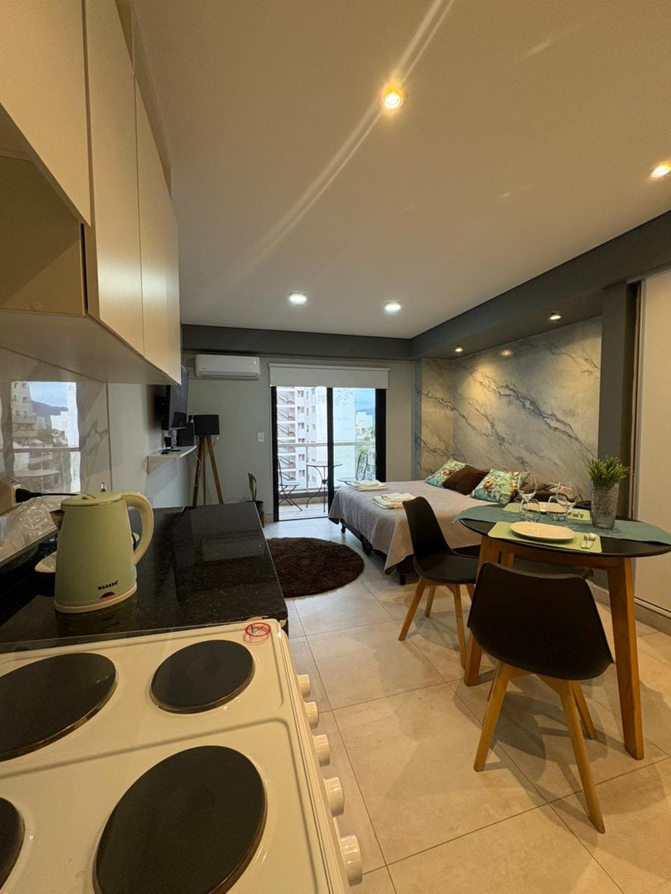 Disfruta de Salta la Linda en un alojamiento con todas las comodidades. Amplio monoambiente (studio) con balcón aterrazado, rodeado de verde. Ubicación inmejorable: zona tranquila a solo unos pasos de diversos puntos de interés. Cama Queen (opción dos individuales) + sillón cama. Contamos con cocina de inducción, cafetera Nespresso, lavarropas, smart TV, secador de pelo.