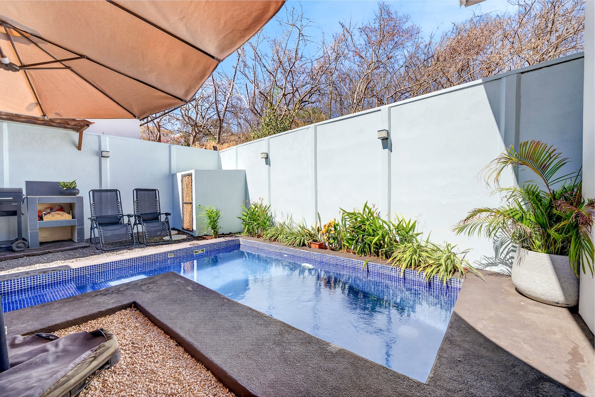 歡迎來到我們的浪漫套房,靠近大海和大自然。 距離Penca海灘不到5分鐘車程,距離Potrero和Flamingo 10分鐘車程,來這個溫馨的小窩放鬆身心,非常適合浪漫之夜。 套房設有自己的小廚房、浴室和私人露台,可欣賞壯麗的海景和山景。 您可以在私人泳池(2米x1.3米)中放鬆身心。 地理位置優越,靠近所有設施和許多活動。 距離利比里亞機場約40公里。