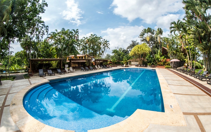 Volcano Lodge, HotelThermal Experience ,位於La Palma de La Fortuna ,擁有溫泉水區。 鬱鬱蔥蔥的熱帶花園、瀑布的聲音和哥斯大黎加著名的阿雷納爾火山的迷人景色讓房客感覺彷彿被帶到雨林;然而,它擁有度假村的所有舒適和服務,讓每個人都能享受愉快和溫馨的體驗。