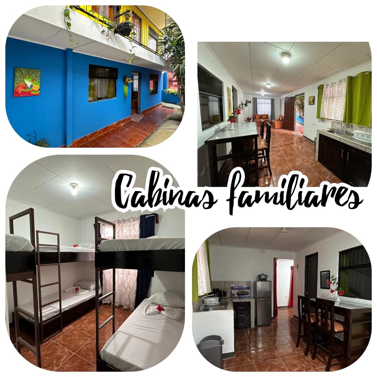 Hostel 2 min from the center of La Fortuna, with a relaxing river and nature. Free use of common areas, work space, exercises, shared kitchen... The private rooms have air conditioning, bathroom with hot water, 2 double beds with orthopedic mattresses, refrigerator and microwave oven inside the room. Cozy place in harmony with nature, sometimes we are visited by different types of birds and sloths.