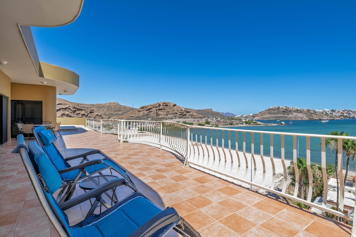 科爾特斯海景、日出、碼頭、城市。 靠近商店、餐廳、當地酒吧。 步行即可抵達聖卡洛斯碼頭和海灘。 4間臥室(一間小房間配有沙發床)、3間全功能浴室、Starlink快速可靠的網路/ WiFi、淨水器/軟化器系統、空調、暖氣、煙霧/一氧化碳警報器、折疊桌、藍牙音響系統、PlayStation 3、Pack 'N Play嬰兒床、高腳椅。 設備齊全的廚房、墨西哥風格的壁畫/藝術、噴泉、環繞式陽臺、乾淨舒適。