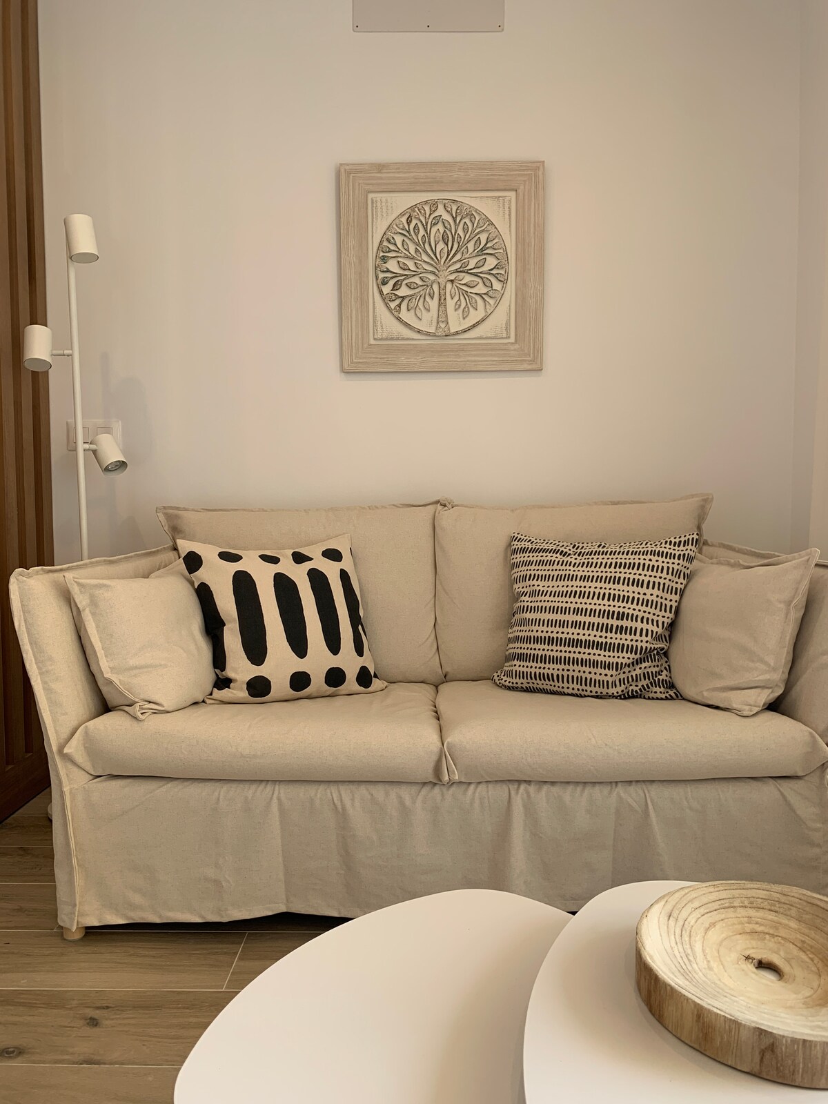 Luminoso,sereno, amplio... un espacio donde el tiempo parece otro, más lento. Disfrutar del sol y de la sombra, trabajar con la casa abierta, sumergirnos en el agua, comer y cenar al aire libre, leer, jugar, pasear por la playa, cocinar sin prisa... la buena vida. Como arquitecto, después de hacer muchas reformas, sé que la luz y el espacio son el verdadero lujo. Un espacio principal que se abre completamente a la terraza orientada hacia el mar, hacia el atardecer, en un entorno muy tranquilo.