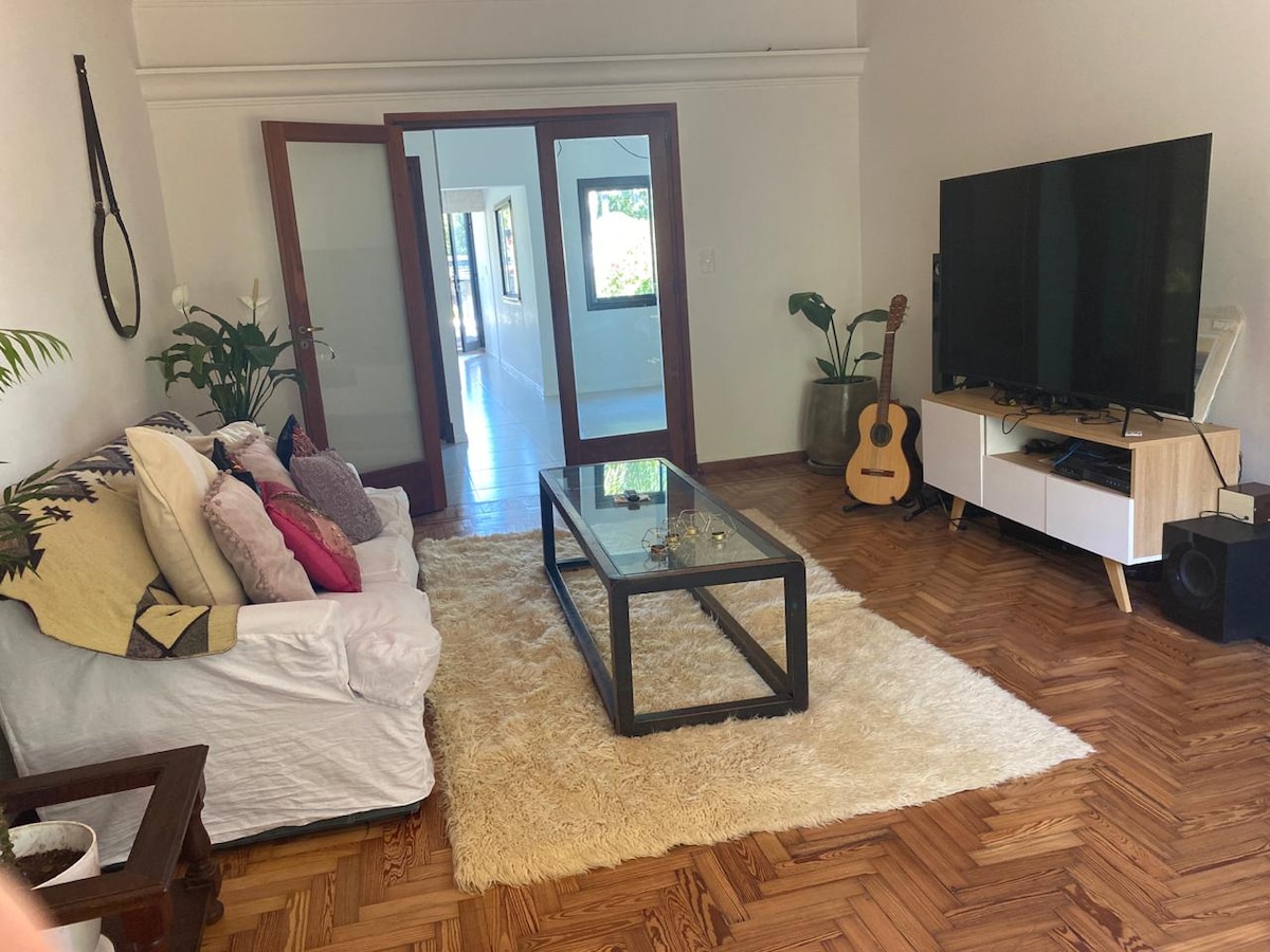 Amazing Colonial Villa in Acassuso, the most residential, quiet and green part of Buenos Aires. Close to restaurants, bars and the coast with the river Tigre. Cozy kitchen, big spaces, huge garden, pool, "parrilla" "quincho" with ping pong table, fireplace and projector for a perfect movie night, and a vibe that delights your senses! The perfect location to spend a pleasant holiday, a romantic week end or a nice reunion with friends!