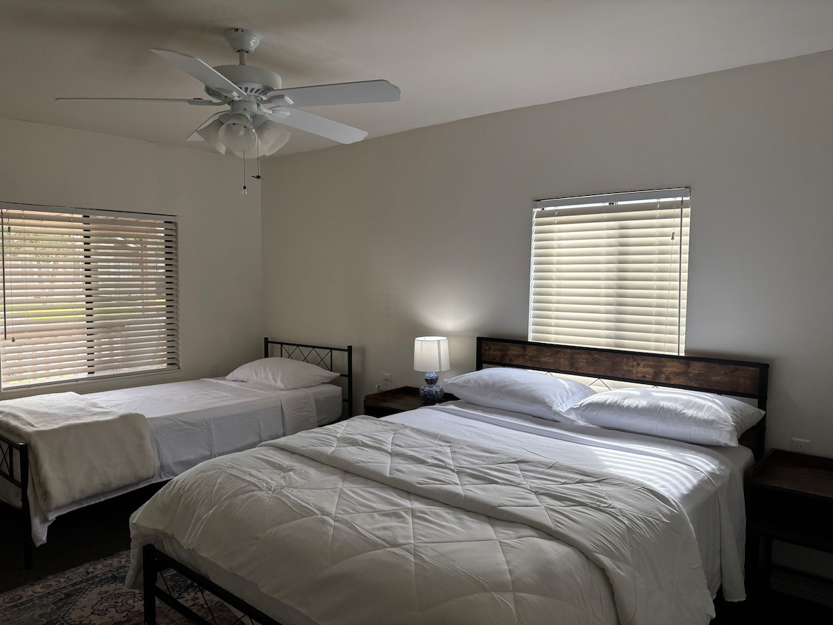 You’ll be charmed by this adorable place to stay. Private entrance, private bathroom. Your own backyard, two bedroom suite, both rooms have one shared bathroom, perfect for one family or one to two couples willing to share bathroom. Own closet. Also have a dog cage in the corner if you are traveling with one dog only can stay outside. No pets inside. Microwave, coffee maker and Refrigerator available. No kitchen available. Rooms are attached with the property but Rooms have their own privacy.
