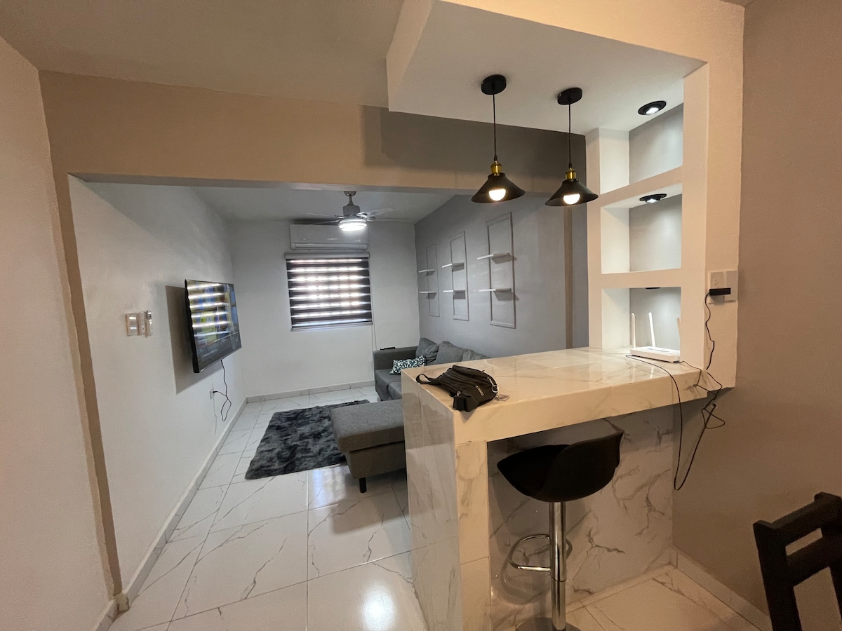 公寓裝飾有新家具,現代風格,佈局是尋求平衡,因此意圖尋求中性和淺色的放鬆,如天藍色和白色,這些顏色和諧。由於它是一個單一環境,您將發現它們如何匯聚,辦公桌工作區域與其燈具,您可以在其中傳播創造力,娛樂智能電視4K 58英寸電視與NETFLIX。以及睡眠區域,全都融為一體。