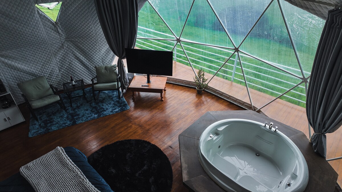 大自然中的豪華圓頂屋,設有私人熱水浴缸
