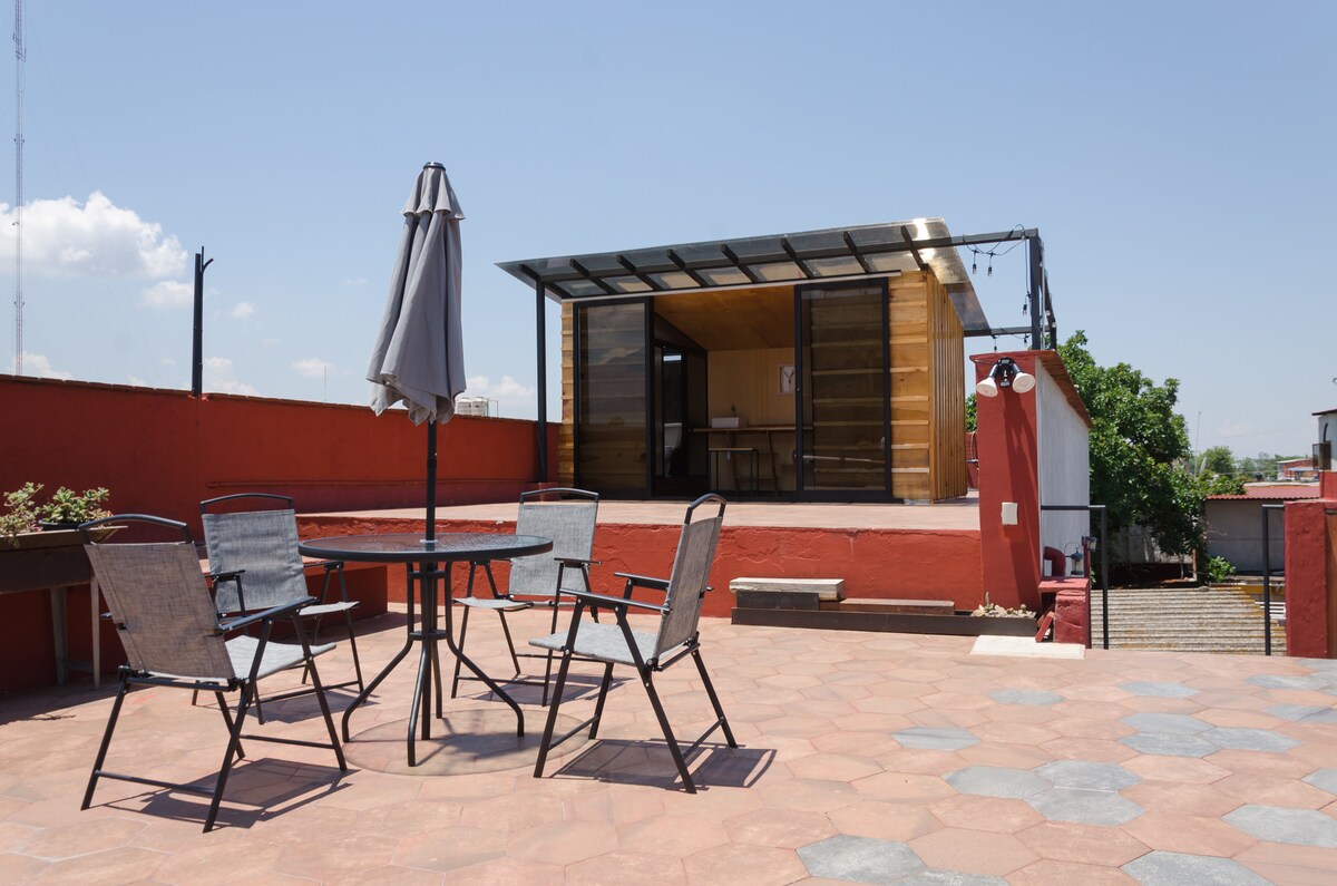 可供一至兩人入住的平房。一間臥室、一間浴室和一間設備齊全的廚房。 位於距離瓦哈卡市十公里的特拉利斯塔克德卡布雷拉,位於北山脈起始的山腳下。毗鄰一個保護區,有鹿、野兔、郊狼等動物。其地理位置適合徒步旅行和山地自行車。非常適合休息、反思、創造力以及與自己和宇宙重新連結。