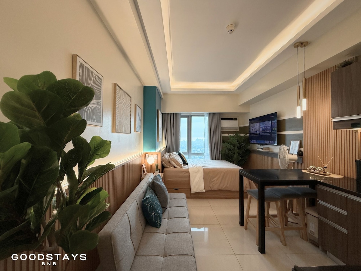 非常適合居家度假或在家工作 👩💻 曼達盧永市肖的舒適單間公寓,配有: ✅ 舒適的雙人牀 ✅ 快速WiFi 💻 ✅ 智能電視,可觀看 Netflix 和 Disney+ 🎬 享受設備齊全的小廚房🍳、乾淨的浴室🚿和每日日落景觀🌇。 為旅人提供的建築物設施包括桑拿、健身房和遊戲室(撞球和國際象棋)。 非常適合奧提加斯、BGC、曼達盧永和馬卡蒂附近的情侶、獨自旅客或商務旅客。 公寓附近有很多商場和設施,所以很方便。
