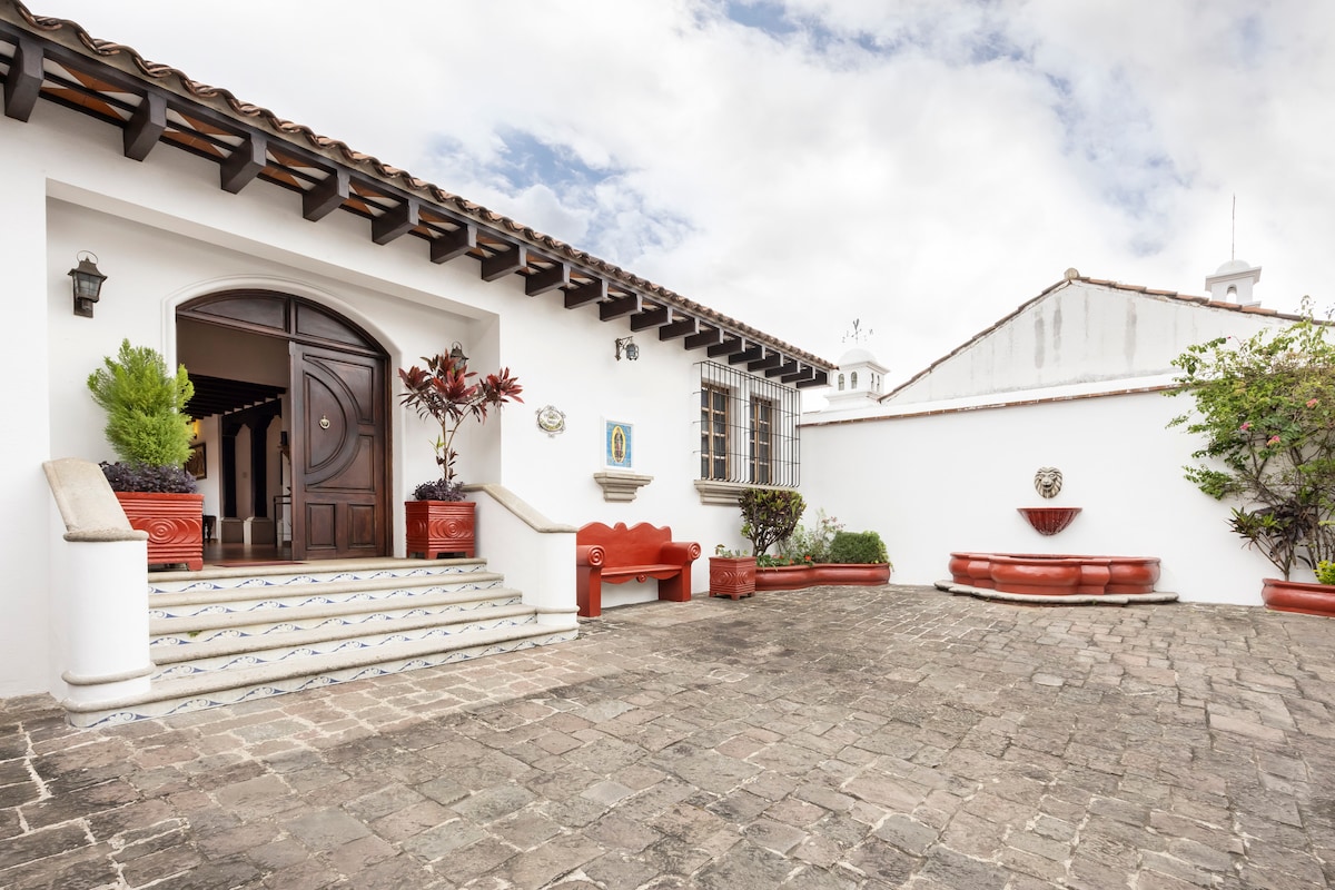在這個獨特而寧靜的度假勝地放鬆身心。享受大自然,聽樹木的輕柔低語,欣賞花朵的鮮豔色彩,聽鳥兒的甜美歌聲,以及我們噴泉水的舒緩聲音。欣賞阿瓜火山、阿卡特南戈火山和火焰火山的壯麗景色。在安提瓜瓜地馬拉殖民城市漫步後,這裡是您休息和放鬆的完美空間,您可以享受這裡的文化、美食和500年的歷史。