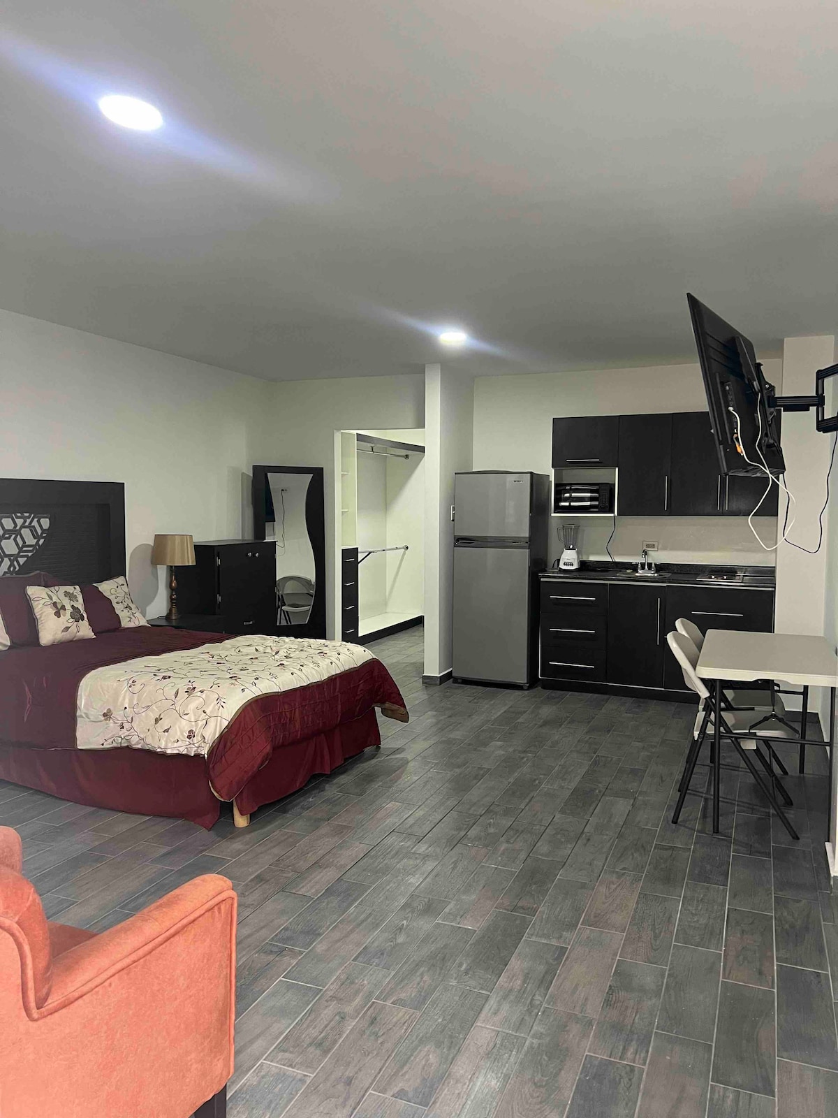 享受這個安靜住宿的簡單,在有保安小屋的封閉式住宅區,靠近領事館,開車15分鐘,國際橋10至20分鐘,餐廳(步行即可到達),商場,藥店,工業園區,加油站,銀行,華雷斯理工學院旁邊,OXXO便利店,快餐店,星巴克等。