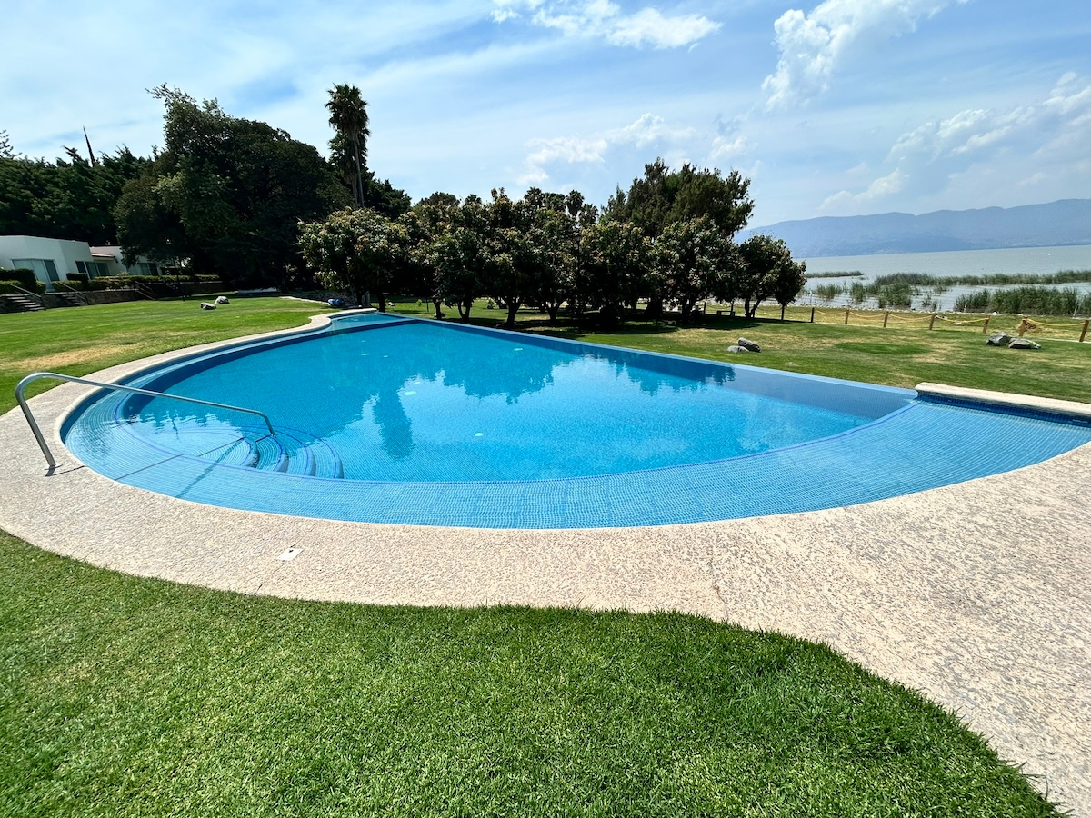 在這個安靜的地方與全家人一起放鬆身心。 入住大自然環繞的Chapala湖畔房源,可欣賞泳池景觀。 非常適合釣魚,與家人和朋友共度時光,同時烹飪燒烤,欣賞美景。 該房子是兩棟房屋門禁社區的一部分。 旅居內有船坡道。