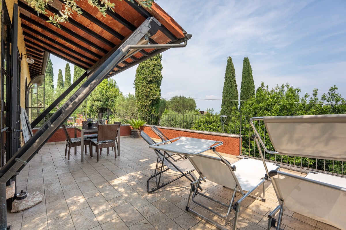 Bright and original apartment few meters from the lake, with a large terrace on which to dine including a relax area surrounded by our nice succulents. In a quiet and residential place. 900 meters from the historic center of Desenzano and 100 meters from lake walk. Partial lake view, the mountains and the green gardens. Spa Shower with turkish bath and chromotherapy. Free parking in the street. 30 minute by car from Gardaland and amusement parks. CIR: 017067-CNI-00733 CIN: IT017067C2DHAHOG7V