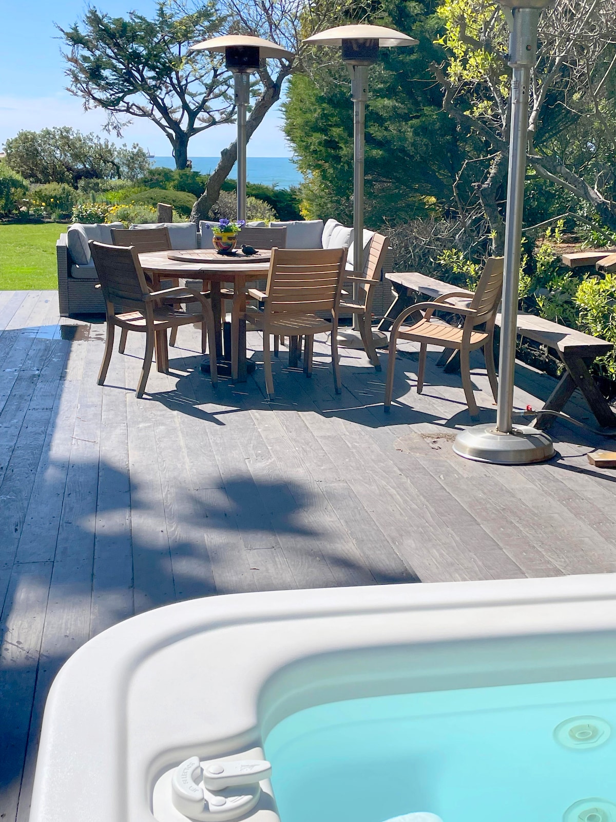 This private oceanfront retreat offers direct beach access, lush gardens, and a spacious lawn. Walk to restaurants, music venues, and galleries nearby. Relax in the hot tub with ocean views or gather around the fire pit at sunset. Surfer’s Beach and Princeton Harbor are just north, and the Coastal Trail passes by for scenic biking and walking. Enjoy surfing, golfing, horseback riding, swimming—or simply unwind with a cocktail while watching the sunset.