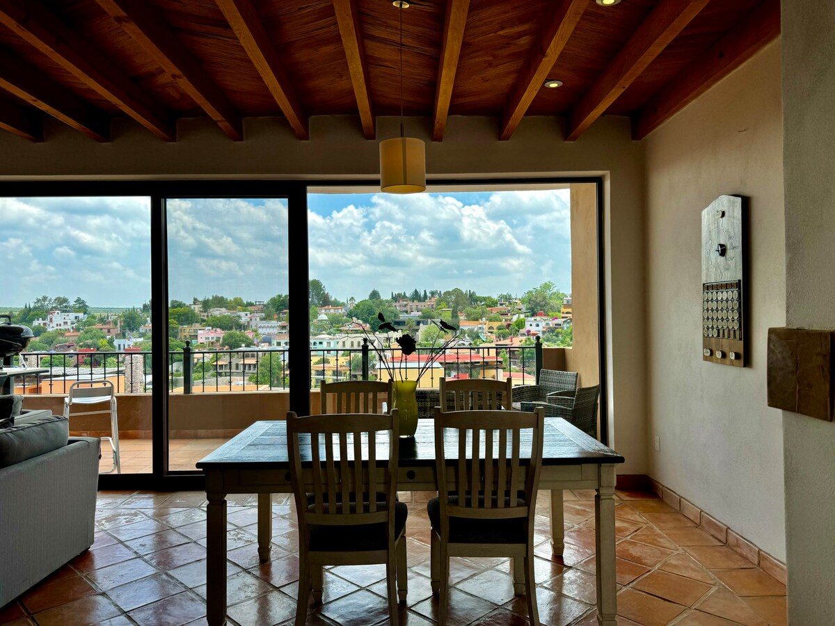 EL NIDO –位於聖米格爾德阿連德(San Miguel de Allende)卡皮亞德皮德拉(Capilla de Piedra)的豪華3間臥室/3.5間浴室公寓 -壯麗日落城市天際線景觀 -最多可供 8 位房客入住 -熱帶鳥類主題裝飾,大理石地板和天際線景觀 -泳池、按摩浴池、桑拿房、健身房、美式壁球場和壁球場 -快速WiFi ( 100 + Mbps )、迷你分離式空調、加大雙人床 -免費停車+免費接駁巴士前往市中心 -24/7 時保安 -步行 6 街區/15 分鐘即可抵達 El Jardín -步行15分鐘即可抵達華雷斯公園 -13分鐘車程即可抵達Fabrica Aurora -12分鐘車程即可抵達Charco del Ingenio