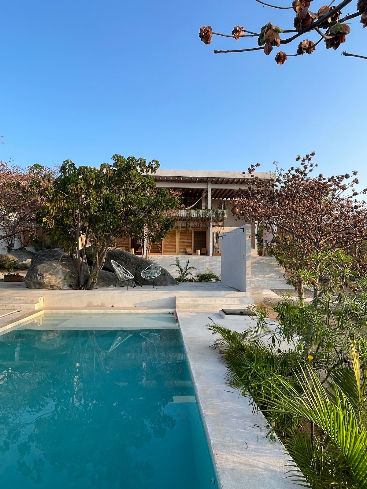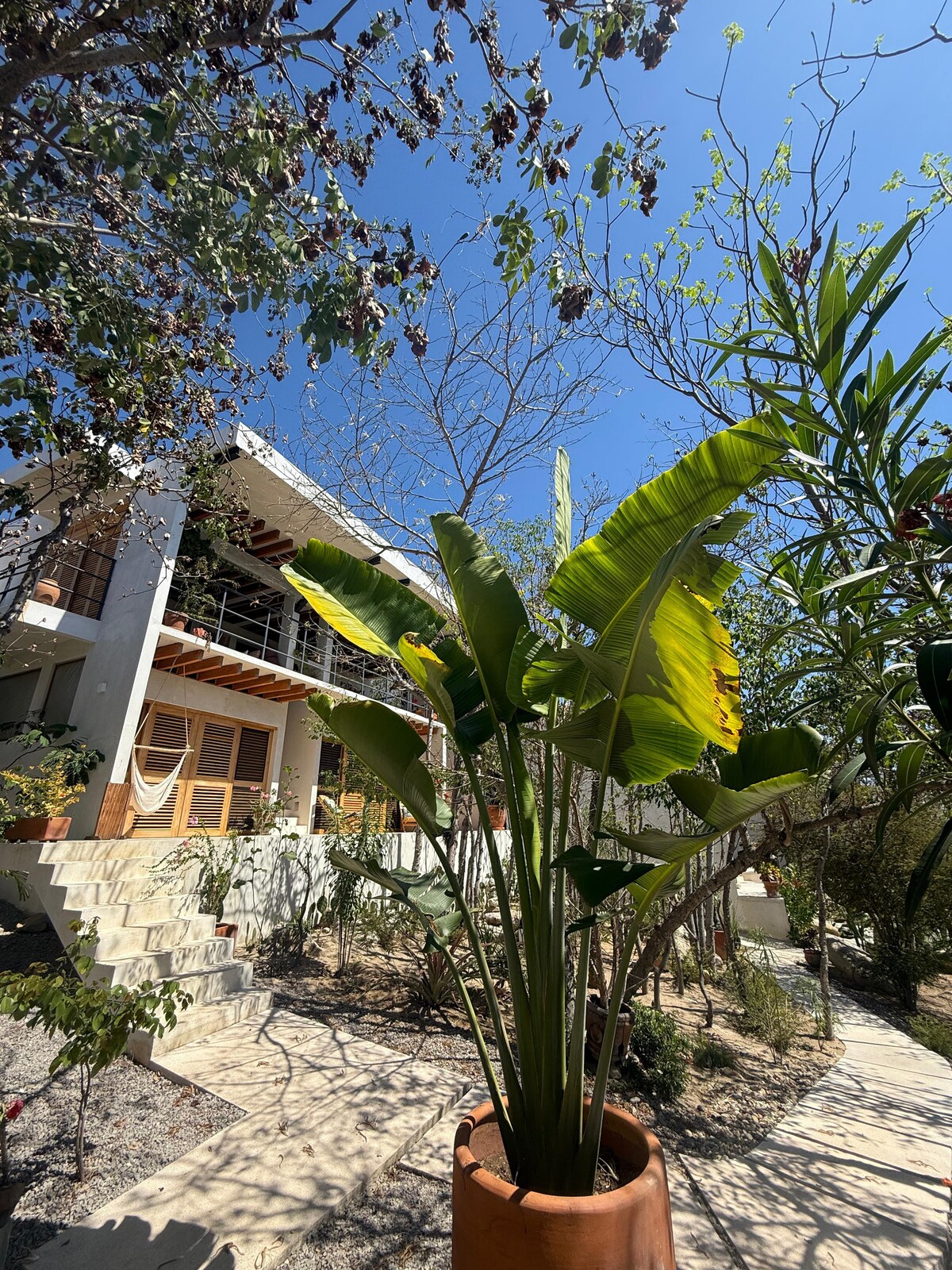Casa Nude — Eco-friendly designer home just a 10-min walk to the beach and a 15-min drive from Puerto Escondido. Powered by solar energy and supported by a biodigester system, this house is part of a private villa with two other homes and a shared saltwater pool. Enjoy filtered water, and peaceful natural surroundings. Car required—no taxis or public transport nearby. We can provide you with Taxi contact to arrange pick up should you need a taxi.