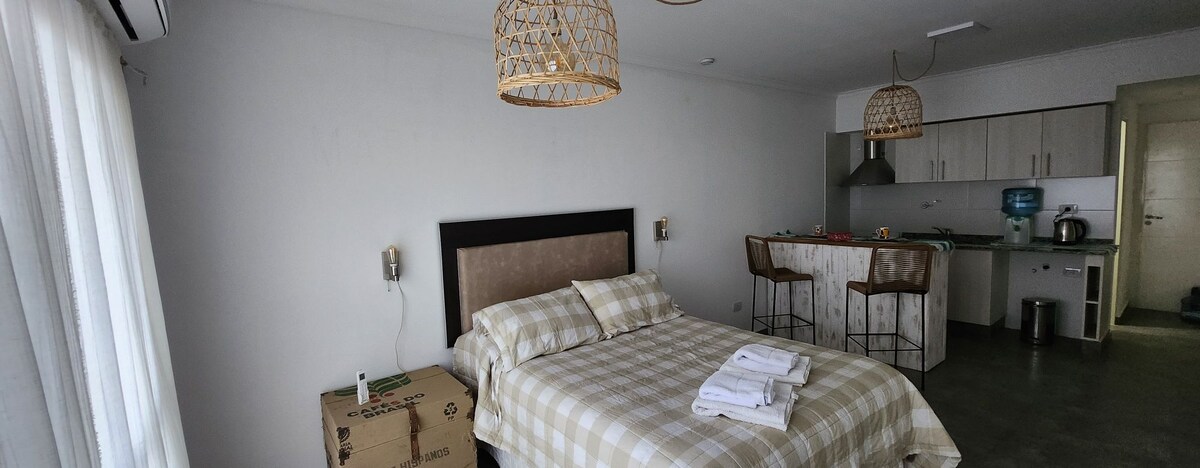 🏡 Disfrutá de un departamento moderno, práctico y totalmente equipado en el corazón de Hurlingham. ideal para parejas, viajeros de negocios o pequeñas familias con 1 niño que buscan comodidad, buena conexión y tranquilidad. el espacio cuenta con: • Cama matrimonial superior cómoda • Sofá cama • Aire acondicionado frío/calor calor • TV pantalla plana • Wifi • Cocina equipada con anafe eléctrico, heladera, microondas, horno eléctrico, pava eléctrica y utensilios • Mesa de comedor • Baño con ducha